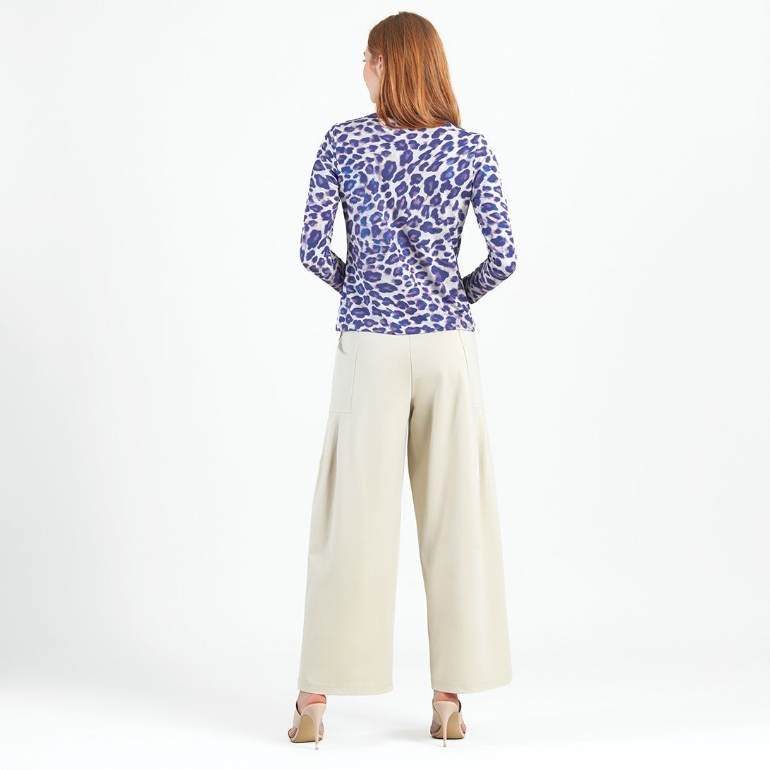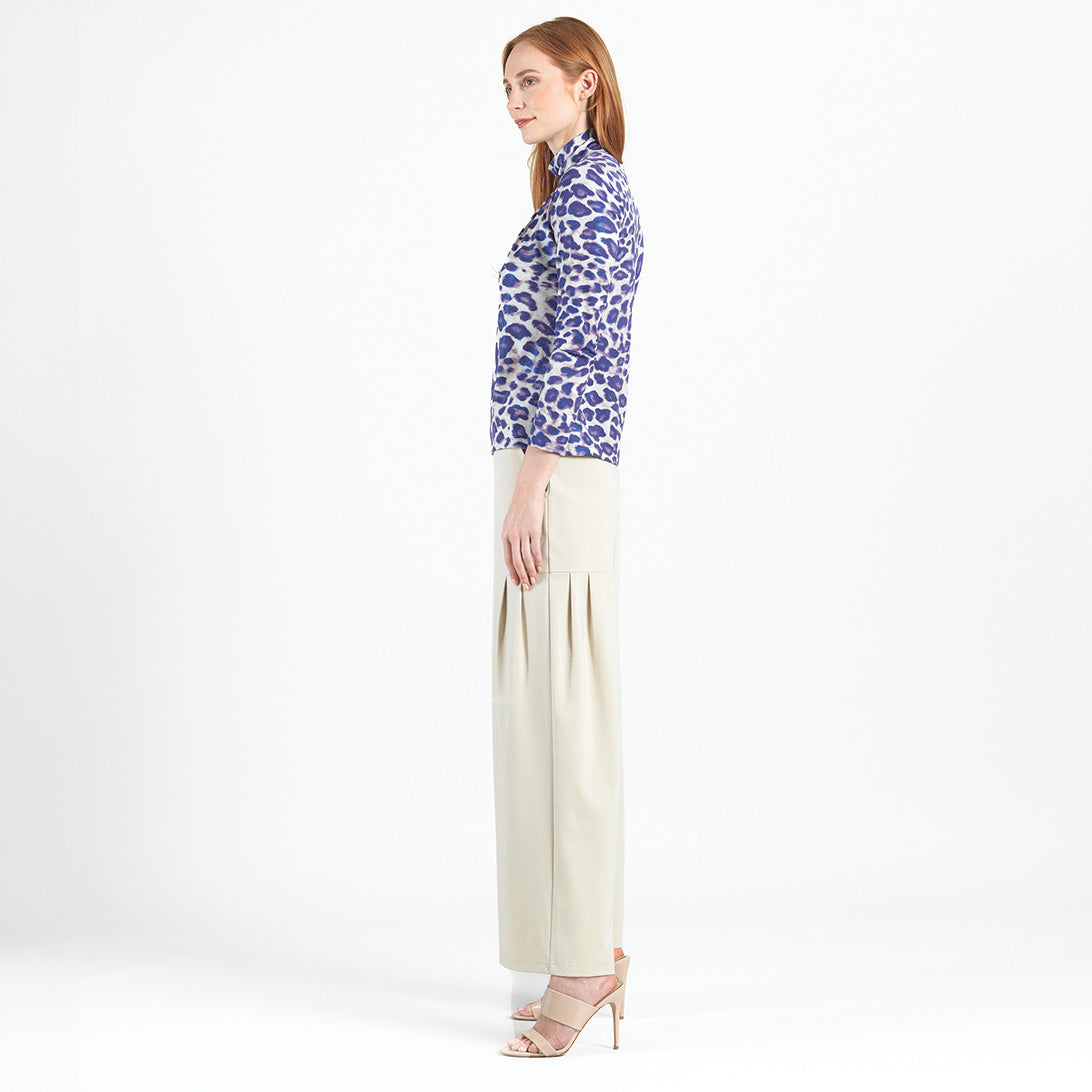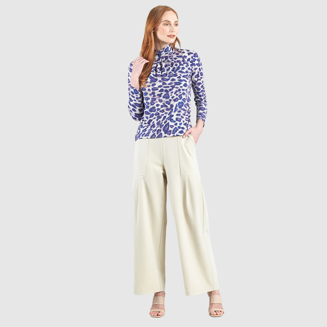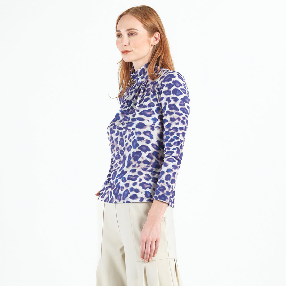 Get spotted for all the right reasons in our captivating Plum Cheetah Mock Neck Pleated Detail Top! Featuring a mock neckline, long sleeves, and a feminine, center pleated detail that begins at the neck and transitions out to a soft-draped body and straight hemline.An exquisite print, featuring cheetah spots in a pale plum with subtle undertones of taupe and ivory, encompassed by an iridescent, foil-like finish, in shimmery purple/blue hues. ♥ Each piece is a unique, one-of-a-kind print and print placement will vary. A new, luxuriously unique fabric, that is inspired by iridescent fibers which add a bit of sheen and luster to the finish. Designed to hold its shape with a firmer knit, while being cool and smooth to the touch. Carefree Travel Fabric – Soft Silky Foil Knit Our signature poly blend fibers offer luxurious softness with lightweight, wrinkle-free comfort. This easy-care fabric is quick drying and cooler than linen or cotton, making it perfect for on-the-go wear. Wrinkle Free Travel Friendly Ultra Lightweight Soft Knit Fabric Breathable Jersey-Like Feel Sheen and Lustrous Finish