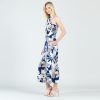 Allow our Geo Flower Grecian Halter Pocket Jumpsuit to encompass your closet! Featuring a feminine Grecian halter neckline, that transitions into two standard back straps, a seamed waist that creates a beautiful shape, two modern pockets, and a cropped gaucho silhouette. Designed, as always, with no ties or zippers, it is the perfect step-in-and-go piece. ** Can also be worn off the shoulder for an alternative neckline! Shades of pale peach, dark blue, grey, taupe, and white come together to create unique geometric flower shapes. ♥ Each piece is a unique, one-of-a-kind print and print placement will vary. Carefree Travel Fabric – Soft Silky Knit Our poly blend fabric has a unique mix of softness, breathability, and lightweight attributes. Against linen and cotton, this material is much quicker drying and cooler to the touch. It’s perfect for people on the move or who need comfortable convenience when out and about. Also, its resistance to wrinkles also makes it great for those with a busy lifestyle who don’t have time to iron their clothes!Wrinkle Free Travel Friendly Ultra Lightweight Soft Knit Fabric Breathable Jersey-Like Feel Alternative Neckline