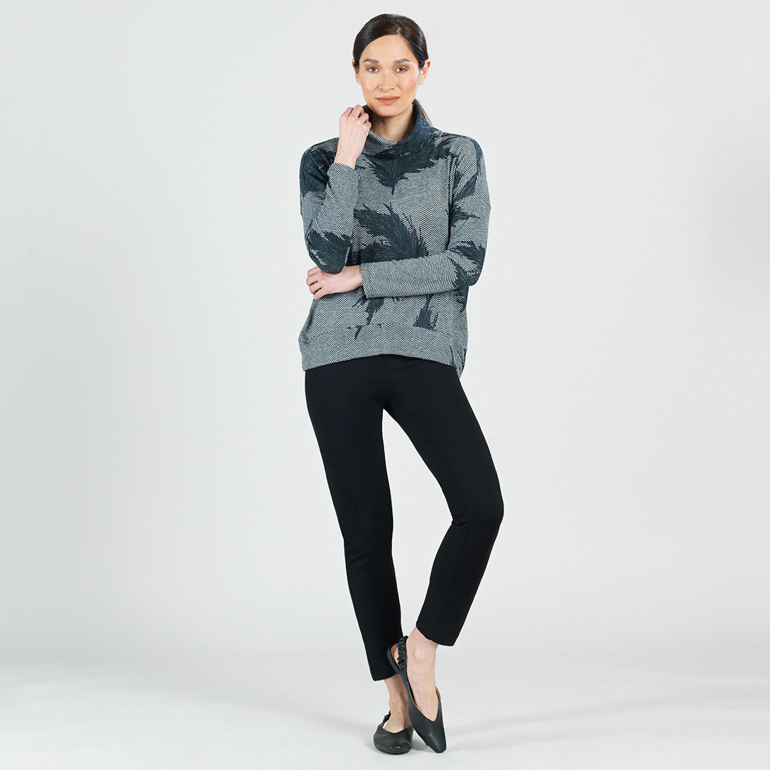 Spread your wings and reach new fashion heights in our Lightweight Cozy Feather Print Cowl Turtleneck Sweater Top! This sweater features a cowl-style turtleneck, long sleeves, and a seamed, tipped hemline. A soft feather design in grey tones is displayed against a graphic black and white chevron stripe print. ♥ Each piece is a unique, one-of-a-kind print and print placement will vary. Lightweight Cozy Sweater KnitOur cozy sweaters are designed for optimal comfort and convenience. Made from lightweight soft plush knit and Poly-Blend fibers, they are the perfect addition to any wardrobe. Ideal for layering and is travel-friendly but still breathable enough to keep you from getting too warm. Easy to care for and long-lasting, they are sure to become a staple in your everyday.Travel Friendly Lightweight Sweater Knit Soft Texture
