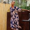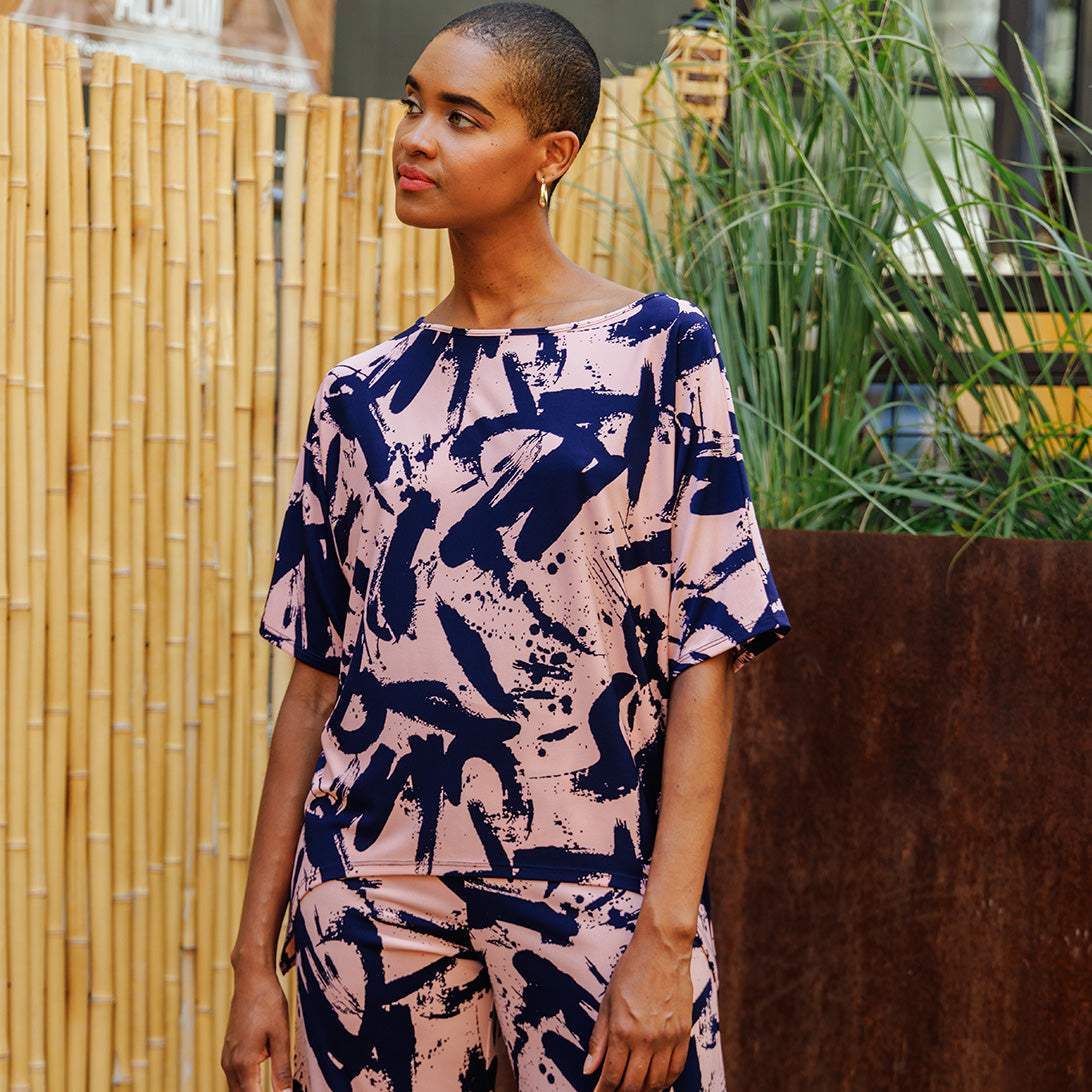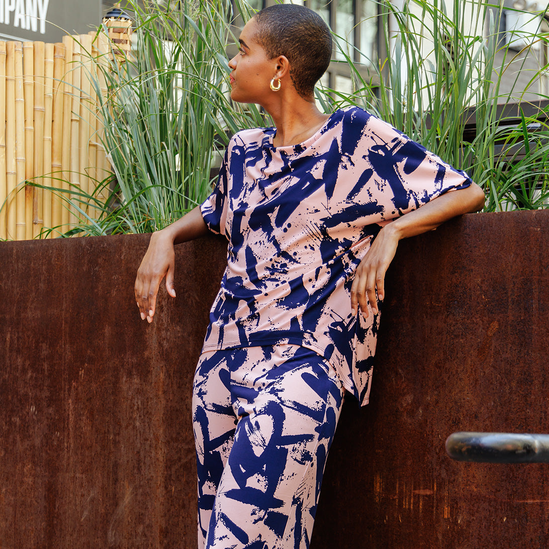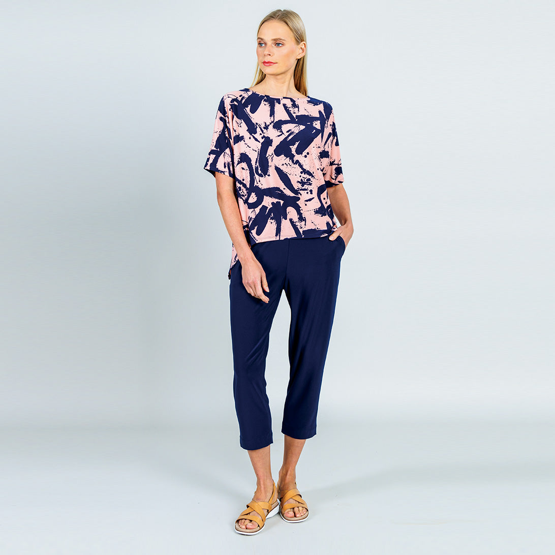 Burst into color wearing our Splash Stroke Loose Cut Hi-Low Top! This top features a round neckline, elbow-length dolman sleeves, and an up-curved, hi-low hemline. An artistic print, featuring paint splash strokes in shades of navy, against a light coral background with neutral undertones. ♥ Each piece is a unique, one-of-a-kind print and print placement will vary. Carefree Travel Fabric – Soft Silky Knit Our signature poly blend fibers offer luxurious softness with lightweight, wrinkle-free comfort. This easy-care fabric is quick drying and cooler than linen or cotton, making it perfect for on-the-go wear.Wrinkle Free Travel Friendly Ultra Lightweight Soft Knit Fabric Breathable Jersey-Like Feel