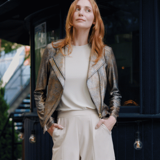 If pennies bring good luck, our Metallic Liquid Leather Textured Signature Jacket is bound to do the same! Made from our beautiful signature stretch knit, extremely lightweight soft “lambskin feel” fabric with a soft, textured metallic shimmer finish. This jacket features a notched lapel with an upright collar, long sleeves, rustic gold asymmetrical zip closure, faux pocket zipper slits as well as complimentary detailed front and back stitching. Our Copper shade is a metallic, bronze foiled color with silver and gold undertones, with a textured finish that gives off a three-dimension effect. ♥ Each piece is a unique, one-of-a-kind print and print placement will vary. The interior is made from soft knit giving it the right amount of stretch with breathable superb wear that conforms to your body and provides you with a figure-flattering silhouette and best of all it’s vegan-friendly! Clara Sunwoo | Favorite Things from CS on Vimeo.Metallic Liquid Leather KnitFeel the touch of luxury with our signature soft stretch poly blend fibers, enhanced with a unique coating of faux liquid leather with a luxurious metallic finish for an elegant look. Enjoy the convenience of easy care, quick drying, and a cooler touch than linen or cotton.Travel Friendly Ultra Lightweight Soft Knit Fabric – Faux Leather Textured Metallic Shimmer Finish Vegan Friendly!