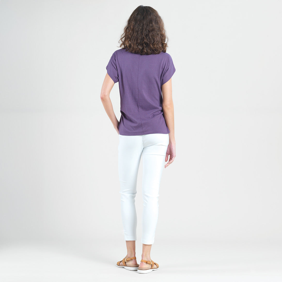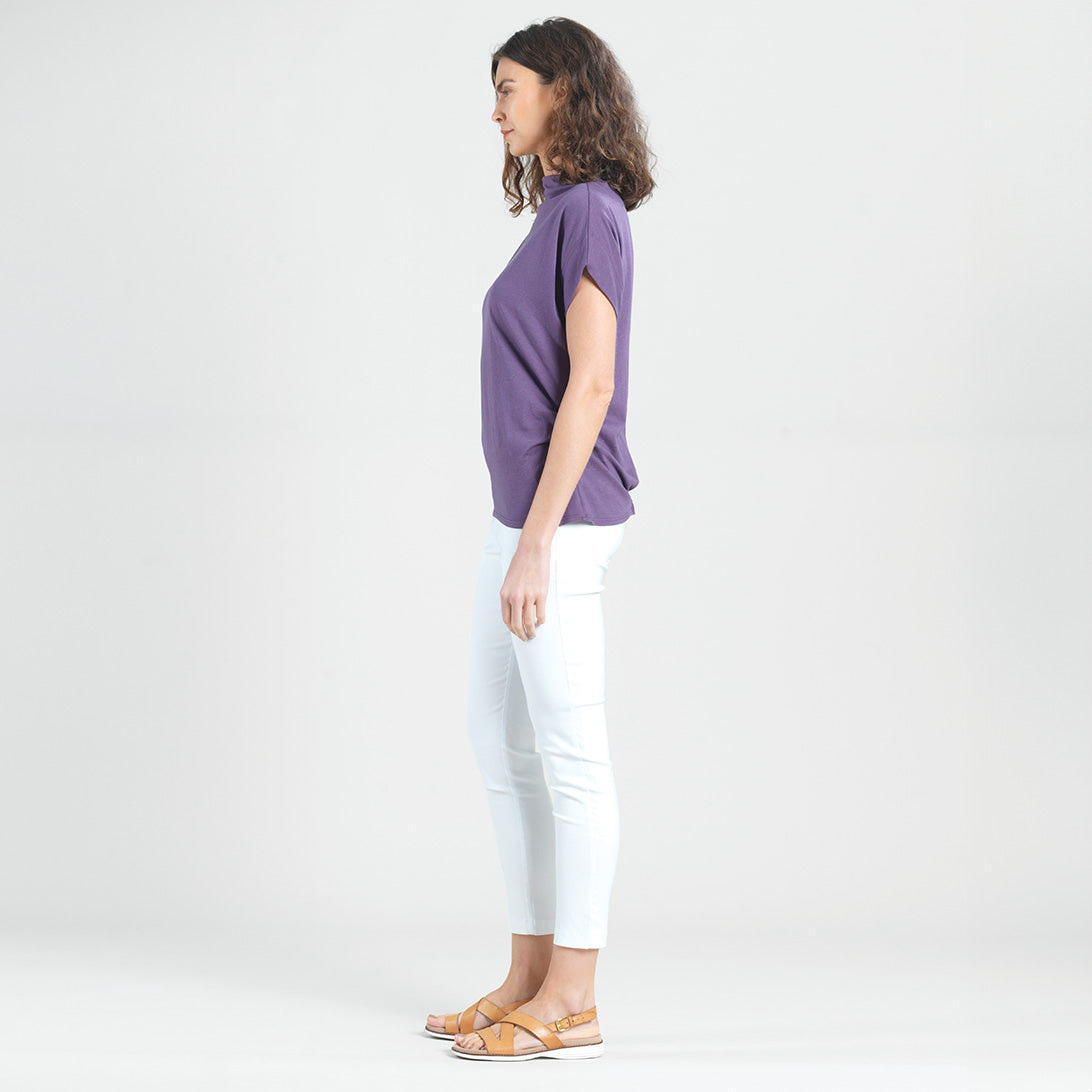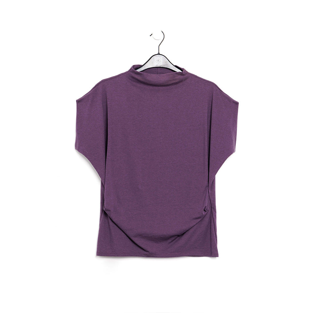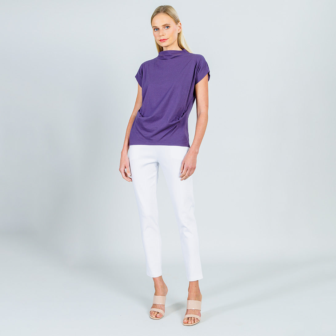 When you’re in a fashion bind, you can rest assured knowing our Modal Cotton Funnel Neck Side Cinched Top has got you covered! This style features a funnel neckline, short, dolman sleeves, a side cinched detail that drapes and beautifully accentuates the natural curve of the body, and a straight hemline. Our Plum color is a paler mid-tone shade with cool mauve undertones. A thicker, eco-friendly, cotton knit fabric that resembles a lightweight sweatshirt material, but still provides a soft, more opaque touch that can seamlessly be incorporated into your everyday lifestyle. Carefree Travel Fabric – Modal Cotton KnitOur Modal fabric is made from a combination of sustainably sourced beech tree fibers and soft-knit cotton. The fabric is highly durable and breathable, making it comfortable to wear, while its’ easy care properties allow for easy maintenance. Its luxuriously soft feel is sure to be a welcome addition to any wardrobe. Eco-Friendly Travel Friendly Lightweight Soft Thick Cotton Knit Fabric Resembles Sweatshirt Material