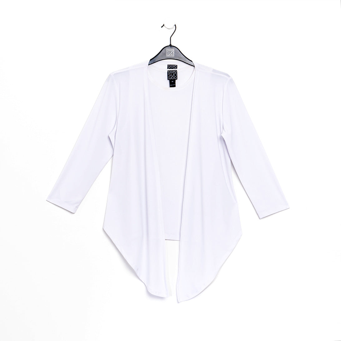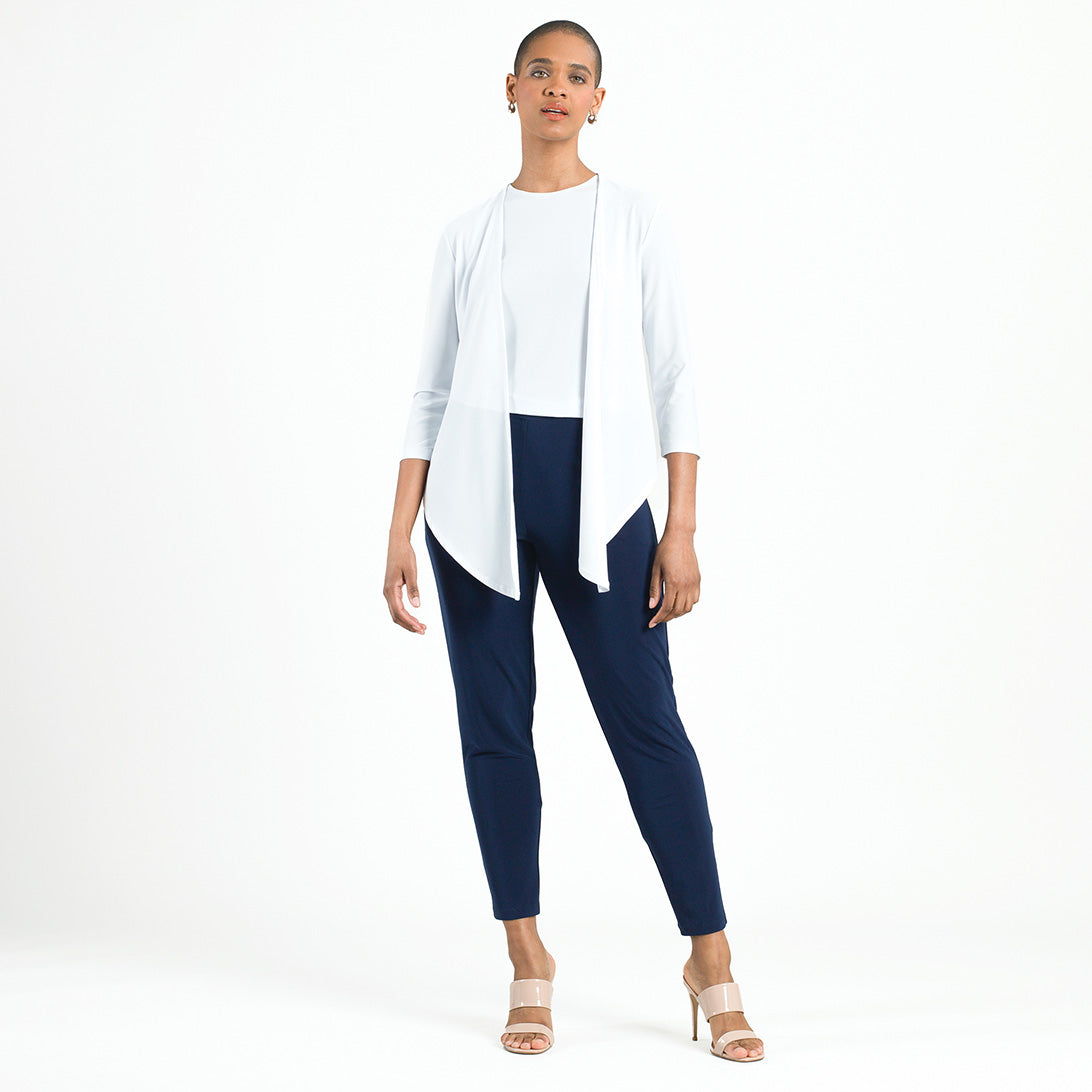 Our Modern Tie Front Cardigan provides versatile and customizable styling options with its 3/4 length sleeves and open front. The optional tie front design allows for personalized silhouettes, perfect for a range of occasions. This timeless piece is sure to become a wardrobe staple. * Under-layer tank sold separately! Carefree Travel Fabric – Soft Silky Knit Our signature poly blend fibers offer luxurious softness with lightweight, wrinkle-free comfort. This easy-care fabric is quick drying and cooler than linen or cotton, making it perfect for on-the-go wear.Wrinkle Free Travel Friendly Ultra Lightweight Soft Knit Fabric