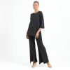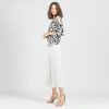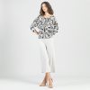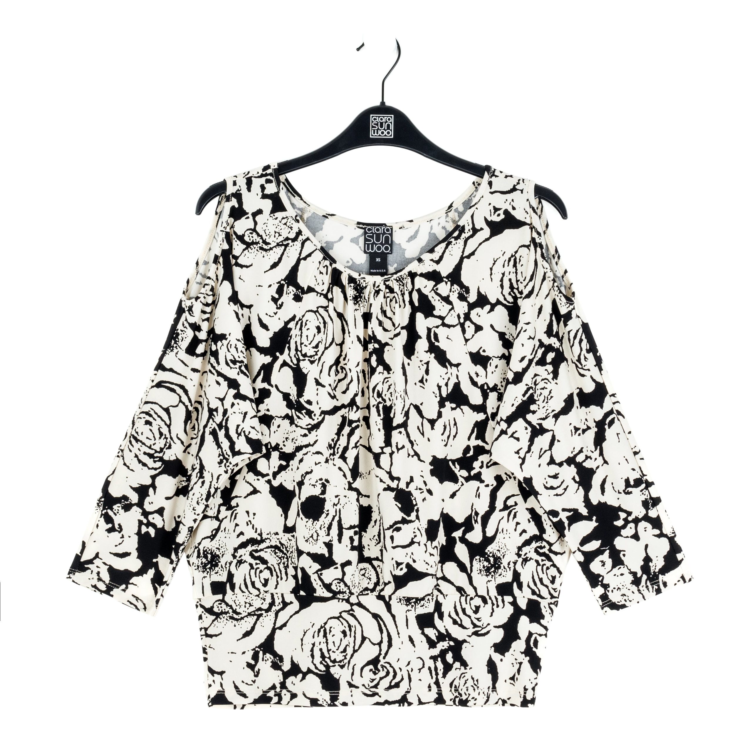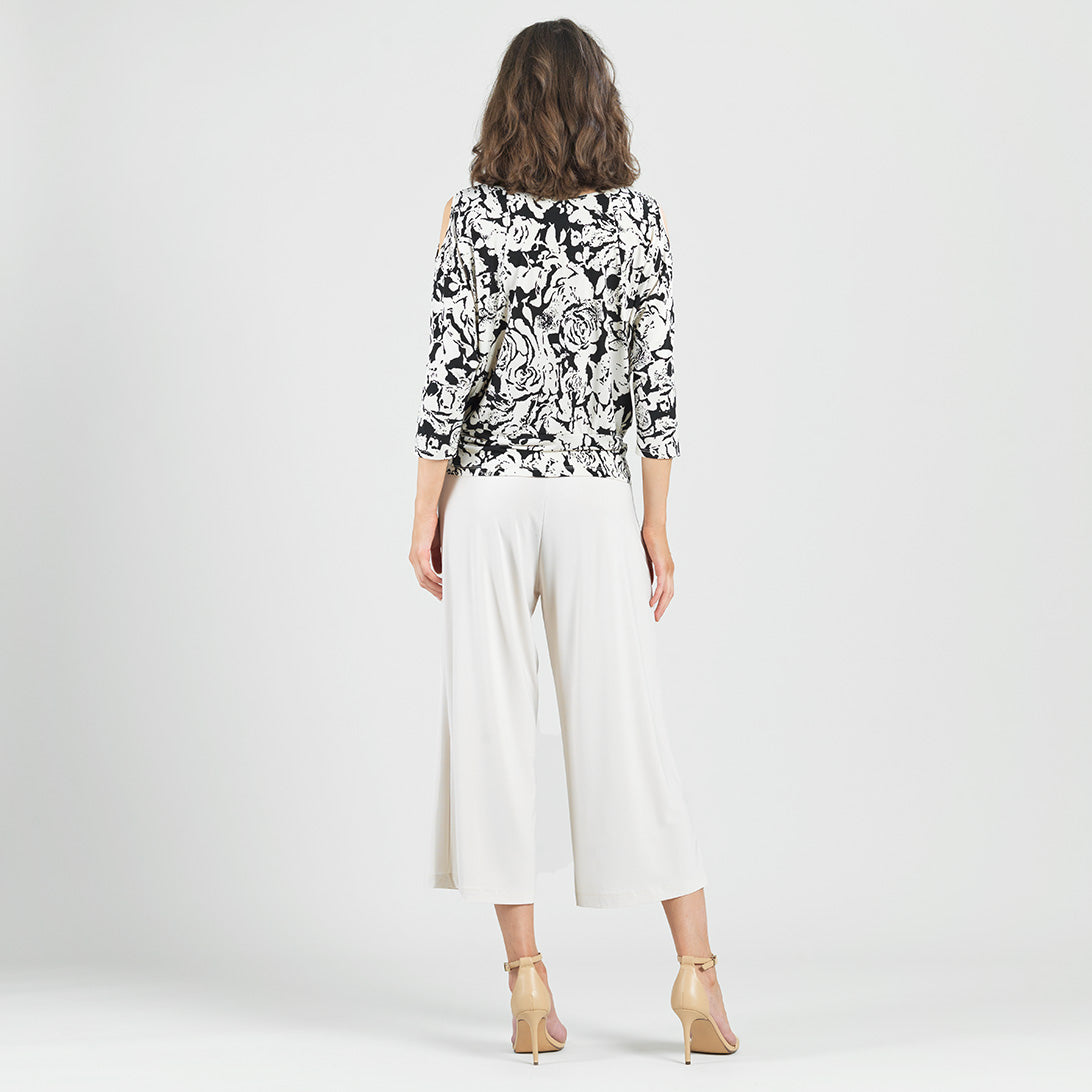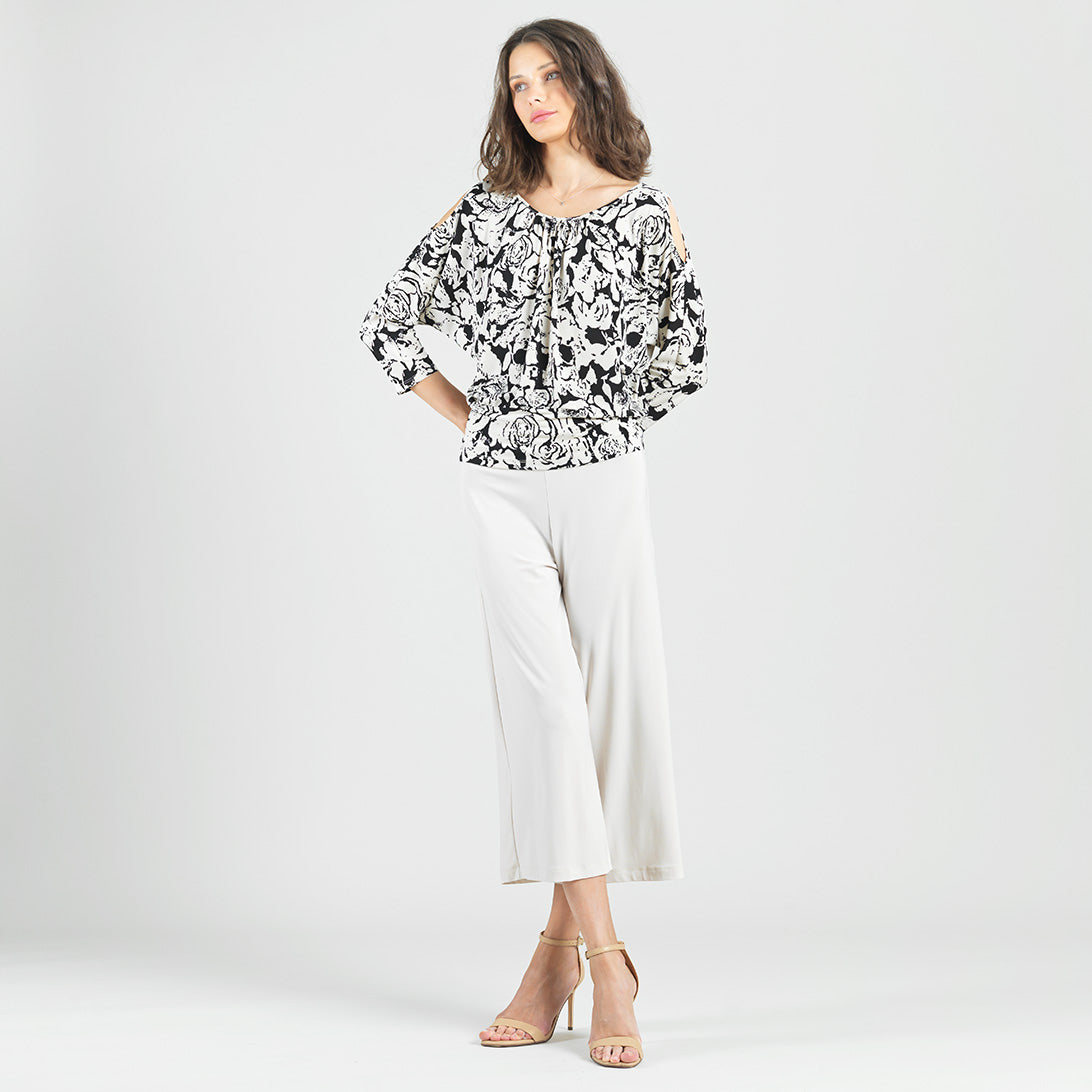 A style so beautiful you’ll look as fresh as our Abstract Rose Open Shoulder Blouson Waist Top! Featuring an open shoulder with 3/4 length dolman sleeves, a scoop neckline with a gathered detail that creates beautiful soft pleats, front and back side diagonal princess seams, and a waist-hugging hemline, that displays an elegant blouson silhouette. A minimalist print comprised of shades of bone and black that create soft and subtle abstract rosettes. ♥ Each piece is a unique, one-of-a-kind print and print placement will vary.Carefree Travel Fabric – Soft Silky Knit Our signature poly blend fibers offer luxurious softness with lightweight, wrinkle-free comfort. This easy-care fabric is quick drying and cooler than linen or cotton, making it perfect for on-the-go wear.Open Shoulder Wrinkle Free Travel Friendly Ultra Lightweight Soft Knit Fabric Breathable Jersey-Like Feel
