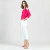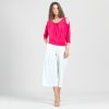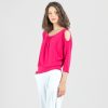 Celebrate your best features in our Open Shoulder Blouson Waist Top! Featuring an open shoulder with 3/4 length dolman sleeves, a scoop neckline with a gathered detail that creates beautiful soft pleats, front and back side diagonal princess seams, and a waist-hugging hemline, that displays an elegant blouson silhouette. Our Hot Pink shade is a warm, vibrant color with magenta undertones.Carefree Travel Fabric – Soft Silky Knit Our signature poly blend fibers offer luxurious softness with lightweight, wrinkle-free comfort. This easy-care fabric is quick drying and cooler than linen or cotton, making it perfect for on-the-go wear.Open Shoulder Wrinkle Free Travel Friendly Ultra Lightweight Soft Knit Fabric Breathable Jersey-Like Feel