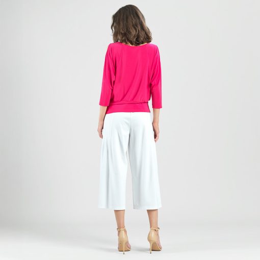Celebrate your best features in our Open Shoulder Blouson Waist Top! Featuring an open shoulder with 3/4 length dolman sleeves, a scoop neckline with a gathered detail that creates beautiful soft pleats, front and back side diagonal princess seams, and a waist-hugging hemline, that displays an elegant blouson silhouette. Our Hot Pink shade is a warm, vibrant color with magenta undertones.Carefree Travel Fabric – Soft Silky Knit Our signature poly blend fibers offer luxurious softness with lightweight, wrinkle-free comfort. This easy-care fabric is quick drying and cooler than linen or cotton, making it perfect for on-the-go wear.Open Shoulder Wrinkle Free Travel Friendly Ultra Lightweight Soft Knit Fabric Breathable Jersey-Like Feel