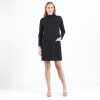 Our Ponte Funnel Neck Tunic Sweater Dress is a timeless and tasteful style piece that can easily be dressed up or down to suit any occasion. Crafted with a luxurious funnel neckline, thoughtfully-placed standard pockets, and a graceful straight hemline, this dress is a perfect embodiment of modern elegance and effortless style. Style it with slim-fitting pants or leggings for a chic and sophisticated look.Standard Ponte Knit Fabric Our Ponte Poly Blend Fabric is perfect for those seeking the ideal blend of stability and softness. Its thick double-knit composition provides superior shape retention and a luxurious matte finish, while the added thickness offers a premium feel. Enjoy a classic, polished look without sacrificing comfort. Soft, Structured Feel Thicker Than Jersey-Knit