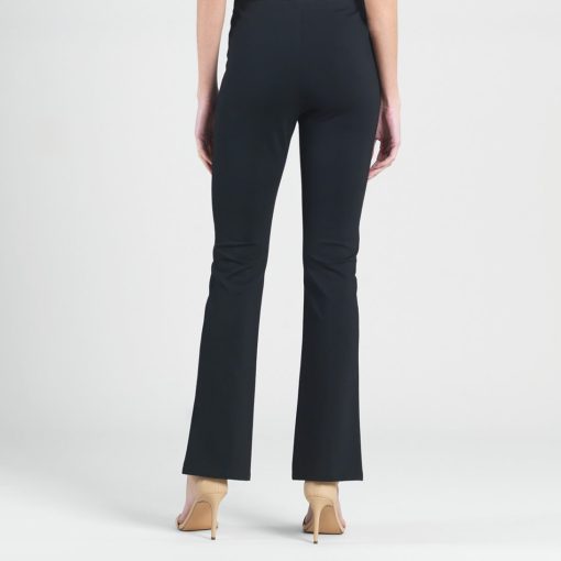 Our sleek and chic Ponte Kick Front Slit Pant is all the style you need. This pant features a 1” pull-on elastic waistband, vertical center leg seam with a flared hem, and sleek front leg slit. Made to provide a slimming silhouette in the hip and thigh area while gradually flaring towards the hem. Standard Ponte Knit Fabric Our Ponte Poly Blend Fabric is perfect for those seeking the ideal blend of stability and softness. Its thick double-knit composition provides superior shape retention and a luxurious matte finish, while the added thickness offers a premium feel. Enjoy a classic, polished look without sacrificing comfort. 1″ Elastic Waistband 4.5″ to 5″ Front Slit Flared Opening Soft, Structured Feel Thicker Than Jersey-Knit