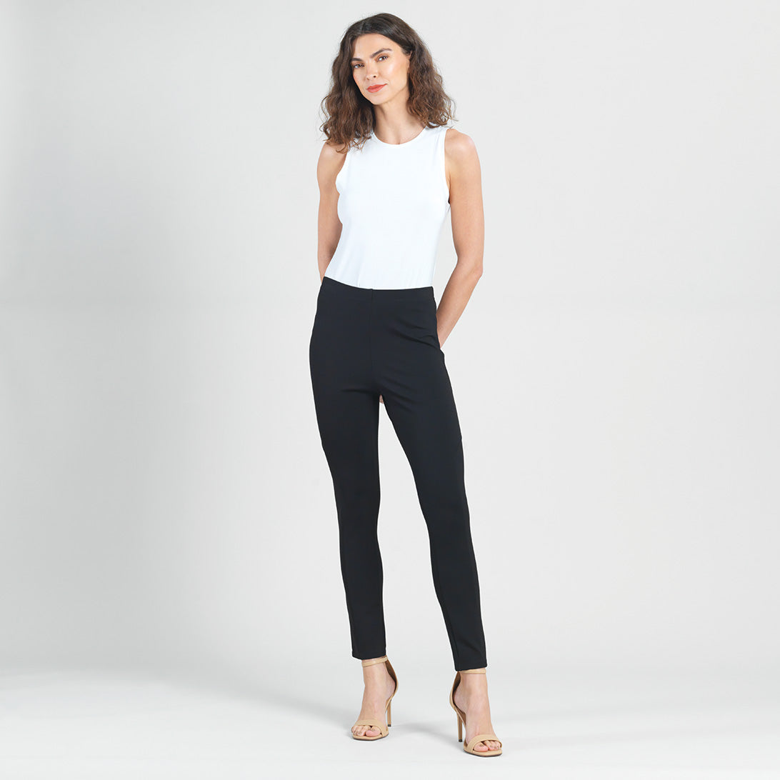 Our Ponte Knit Slim Rider Pant is tailored to perfection! This full-length legging features a slim fitting shape that offers a more substantial and structured fabric feel, a 1” pull-on elastic waistband, and a slender mid-thigh seam that accentuates the leg down to a fitted tapered hem. Standard Ponte Knit Fabric Our Ponte Poly Blend Fabric is perfect for those seeking the ideal blend of stability and softness. Its thick double-knit composition provides superior shape retention and a luxurious matte finish, while the added thickness offers a premium feel. Enjoy a classic, polished look without sacrificing comfort. 1″ Elastic Waistband Soft, Structured Feel Thicker Than Jersey-Knit