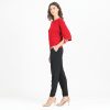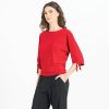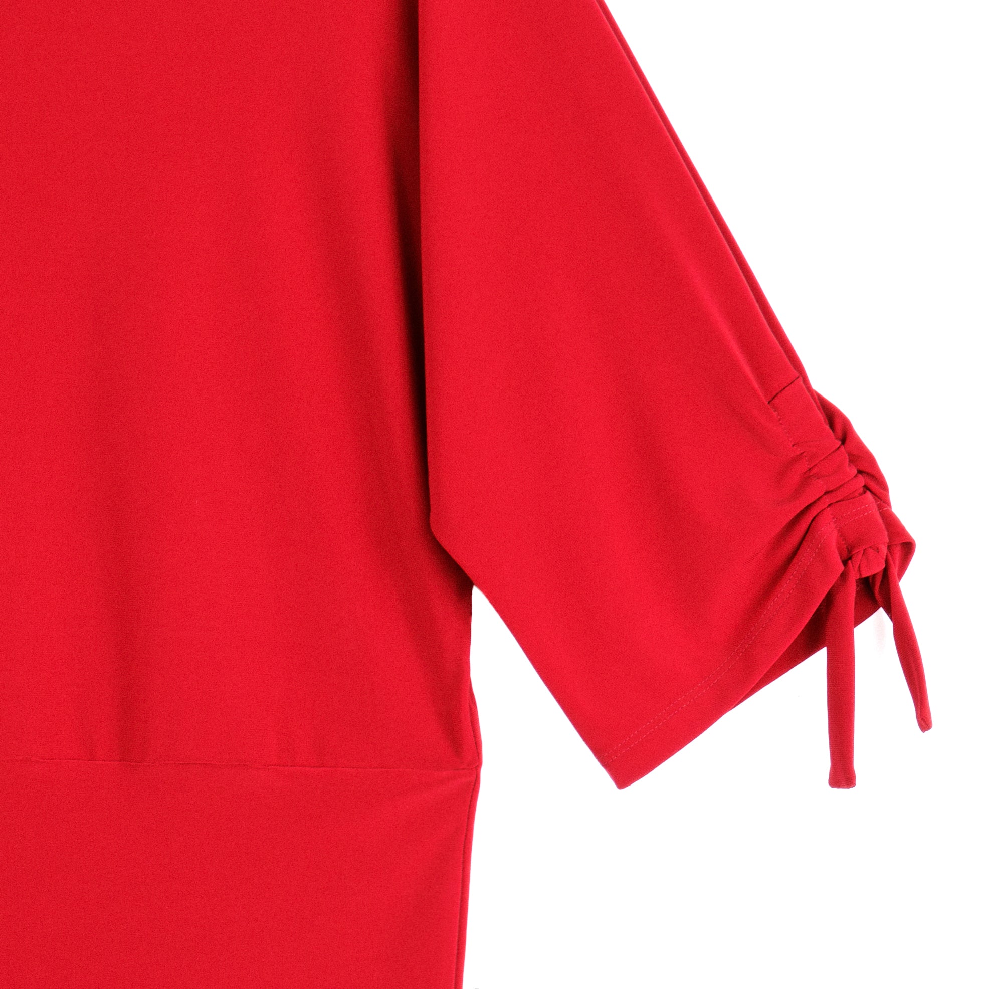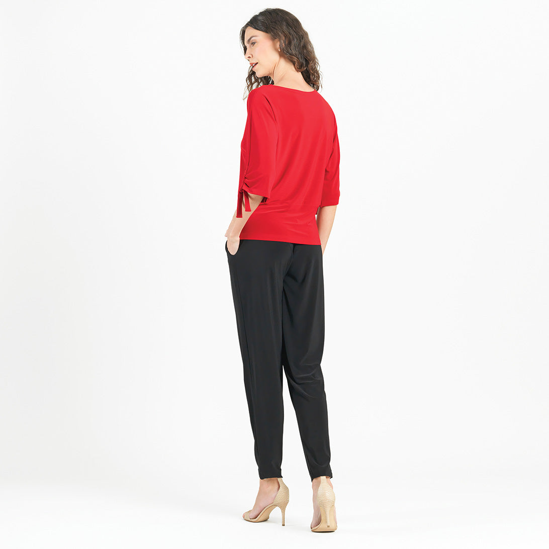 Get ready to pull out all the fashion stops in our Pull-Tie Cuff Blouson Top! Featuring a round neckline, dolman half-sleeves with pull-tie cuffs, designed to allow you to adjust the sleeve for a custom ruched effect, and waist hugging hemline, that displays an elegant blouson silhouette. Our Red shade is a true red color with subtle brick undertones.Carefree Travel Fabric – Soft Silky Knit Our signature poly blend fibers offer luxurious softness with lightweight, wrinkle-free comfort. This easy-care fabric is quick drying and cooler than linen or cotton, making it perfect for on-the-go wear.Wrinkle Free Travel Friendly Ultra Lightweight Soft Knit Fabric Breathable Jersey-Like Feel