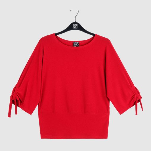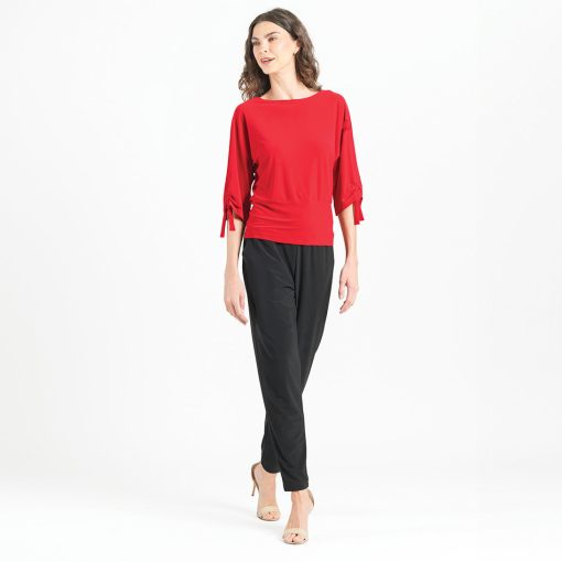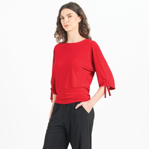 Get ready to pull out all the fashion stops in our Pull-Tie Cuff Blouson Top! Featuring a round neckline, dolman half-sleeves with pull-tie cuffs, designed to allow you to adjust the sleeve for a custom ruched effect, and waist hugging hemline, that displays an elegant blouson silhouette. Our Red shade is a true red color with subtle brick undertones.Carefree Travel Fabric – Soft Silky Knit Our signature poly blend fibers offer luxurious softness with lightweight, wrinkle-free comfort. This easy-care fabric is quick drying and cooler than linen or cotton, making it perfect for on-the-go wear.Wrinkle Free Travel Friendly Ultra Lightweight Soft Knit Fabric Breathable Jersey-Like Feel
