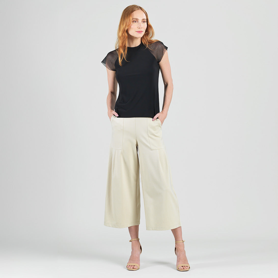 Our Rayon-Ponte Knit Pleated Gaucho Pocket Pant combines the best of both worlds! A truly versatile pant that works for both warm and cool climates! Featuring a loose-fitting wide-leg cropped silhouette, 1.75” pull-on elastic waistband, and side pockets with gorgeous front and back pleated details, designed to naturally flow against the body. Our Khaki shade is a lighter, neutral color with creamy-beige undertones A new, unique fabric that strikes the perfect balance of softness, durability, and stretch. Designed with the smooth breathability of rayon, and the strength and resilience of ponte, this midweight fabric withstands everyday wear and maintains its shape over time. Though it is a thicker fabric, it provides ease of movement and flexibility with a translucent, semi-structured finish. Carefree Travel Fabric – Soft Rayon-Ponte Knit A substantial midweight fabric, with a smooth semi-structured finish and excellent stretch capabilities. This long-lasting fabric retains its softness and shape wash after wash, is easy to care for with great absorbent properties, and ensures insulation that offers both comfort and breathability.1.75″ Elastic Waistband Side Pockets Wrinkle Free Travel Friendly Midweight Soft, Semi-Structured Fabric