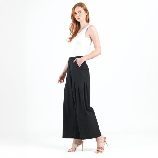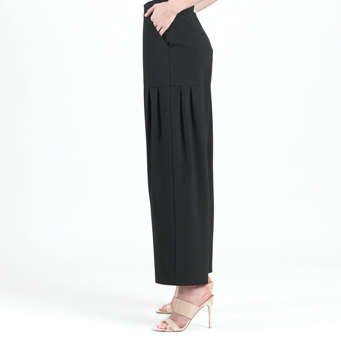 Our Rayon-Ponte Knit Pleated Wide Leg Pocket Pant combines the best of both worlds! A truly versatile pant that works for both warm and cool climates! Featuring a loose-fitting wide-leg silhouette, 1.5” pull-on elastic waistband, and side pockets with gorgeous front and back pleated details, designed to naturally flow against the body. A new, unique fabric that strikes the perfect balance of softness, durability, and stretch. Designed with the smooth breathability of rayon, and the strength and resilience of ponte, this midweight fabric withstands everyday wear and maintains its shape over time. Though it is a thicker fabric, it provides ease of movement and flexibility with a translucent, semi-structured finish. Carefree Travel Fabric – Soft Rayon-Ponte Knit A substantial midweight fabric, with a smooth semi-structured finish and excellent stretch capabilities. This long-lasting fabric retains its softness and shape wash after wash, is easy to care for with great absorbent properties, and ensures insulation that offers both comfort and breathability.1.5″ Elastic Waistband Side Pockets Wrinkle Free Travel Friendly Midweight Soft, Semi-Structured Fabric