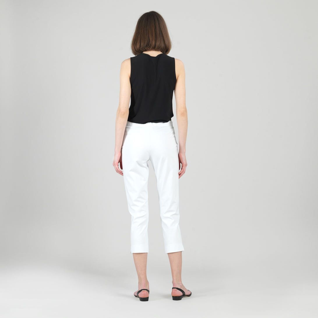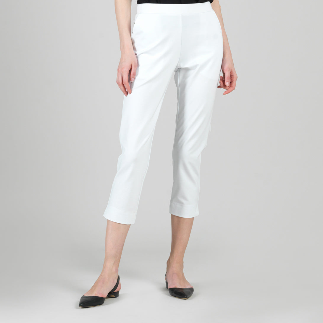Our Rayon-Ponte Knit Pull-On Capri combines the best of both worlds! A truly versatile pant that works for both warm and cool climates! Features a 1.5” pull-on elastic waistband, side pockets, and a cropped straight leg calf-length hem with a small 1.5″ side vent for a cut that provides a slimming leg silhouette.A new, unique fabric that strikes the perfect balance of softness, durability, and stretch. Designed with the smooth breathability of rayon, and the strength and resilience of ponte, this midweight fabric withstands everyday wear and maintains its shape over time. Though it is a thicker fabric, it provides ease of movement and flexibility with a translucent, semi-structured finish. Carefree Travel Fabric – Soft Rayon-Ponte Knit A substantial midweight fabric, with a smooth semi-structured finish and excellent stretch capabilities. This long-lasting fabric retains its softness and shape wash after wash, is easy to care for with great absorbent properties, and ensures insulation that offers both comfort and breathability.1.5″ Elastic Waistband Side Pockets Wrinkle Free Travel Friendly Midweight Soft, Semi-Structured Fabric