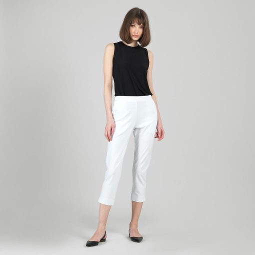 Our Rayon-Ponte Knit Pull-On Capri combines the best of both worlds! A truly versatile pant that works for both warm and cool climates! Features a 1.5” pull-on elastic waistband, side pockets, and a cropped straight leg calf-length hem with a small 1.5″ side vent for a cut that provides a slimming leg silhouette.A new, unique fabric that strikes the perfect balance of softness, durability, and stretch. Designed with the smooth breathability of rayon, and the strength and resilience of ponte, this midweight fabric withstands everyday wear and maintains its shape over time. Though it is a thicker fabric, it provides ease of movement and flexibility with a translucent, semi-structured finish. Carefree Travel Fabric – Soft Rayon-Ponte Knit A substantial midweight fabric, with a smooth semi-structured finish and excellent stretch capabilities. This long-lasting fabric retains its softness and shape wash after wash, is easy to care for with great absorbent properties, and ensures insulation that offers both comfort and breathability.1.5″ Elastic Waistband Side Pockets Wrinkle Free Travel Friendly Midweight Soft, Semi-Structured Fabric