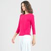 Our Reversible Back Tie Top is a basic silhouette with feminine features! Featuring a round neckline, 3/4 length sleeves, a straight hemline, and a reversible charming back tie detail. ♥ Can also be worn with the back tie in the front for an alternative neckline! Our Hot Pink shade is a warm, vibrant color with magenta undertones.Carefree Travel Fabric – Soft Silky Knit Our signature poly blend fibers offer luxurious softness with lightweight, wrinkle-free comfort. This easy-care fabric is quick drying and cooler than linen or cotton, making it perfect for on-the-go wear.Reversible Back Tie Detail Wrinkle Free Travel Friendly Ultra Lightweight Soft Knit Fabric Breathable Jersey-Like Feel