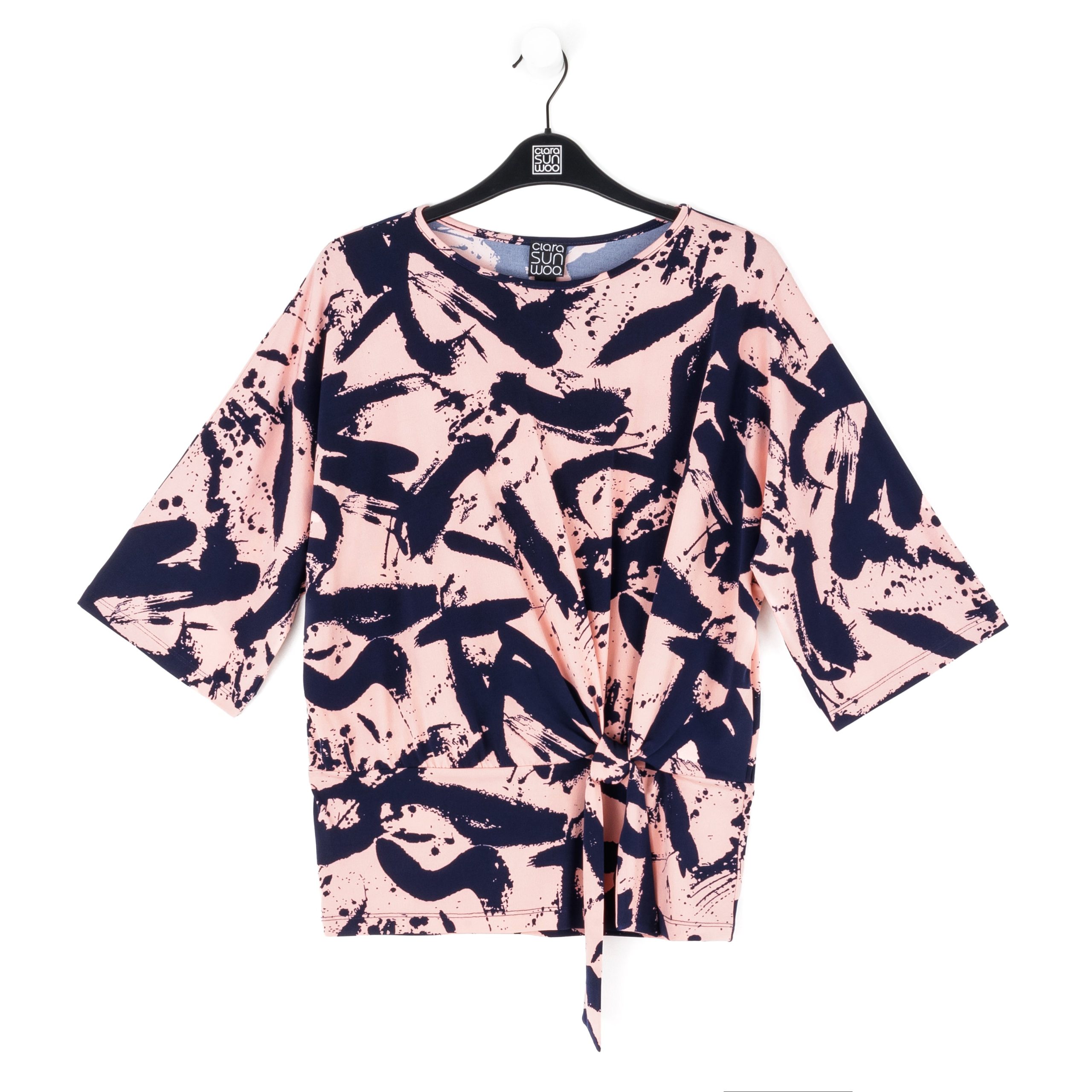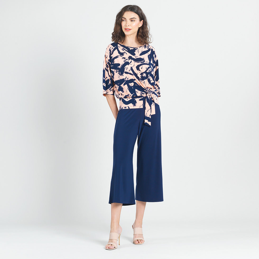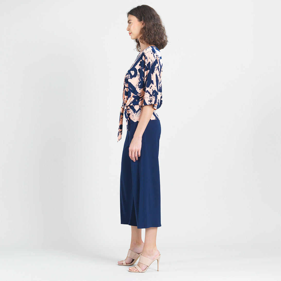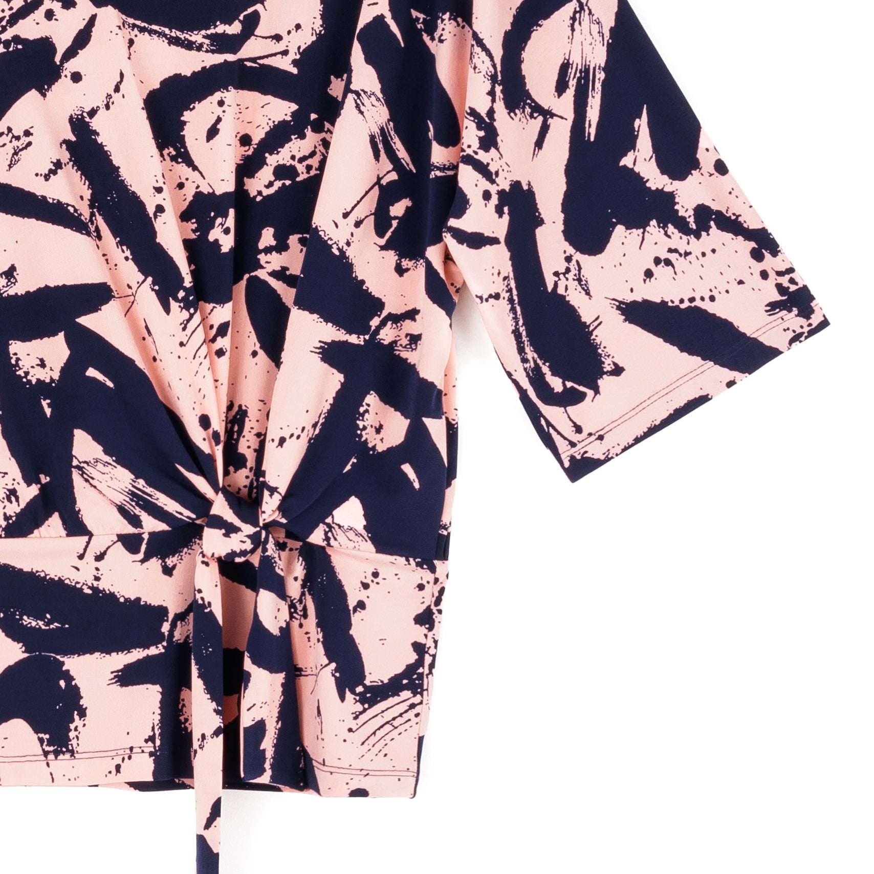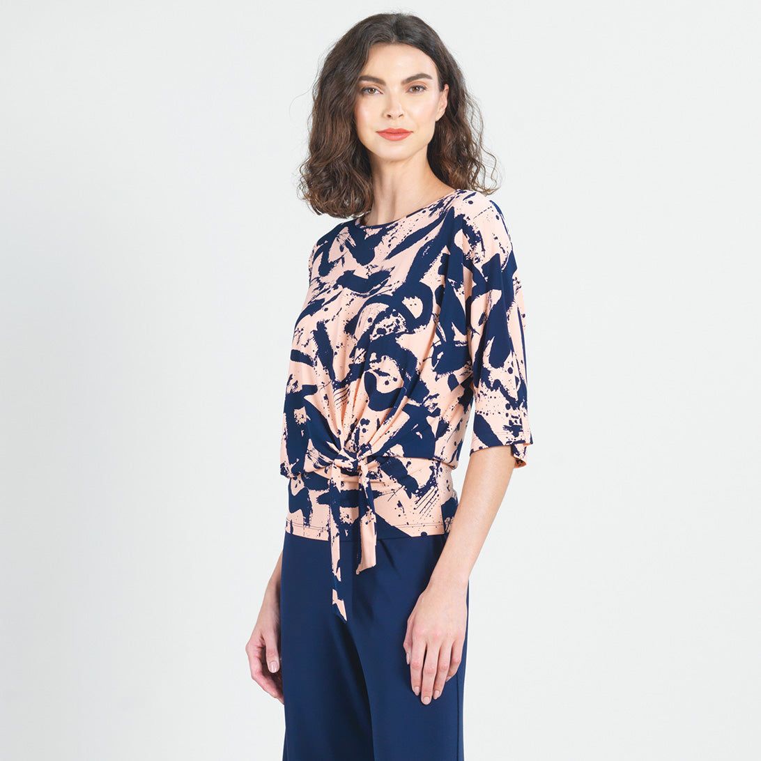 Burst into color wearing our Splash Stroke Side Tie Top! Featuring a high round neckline, elbow-length sleeves, and side tie detail, with a waist-hugging hemline, that displays an elegant blouson silhouette. An artistic print, featuring paint splash strokes in shades of navy, against a light coral background with neutral undertones. ♥ Each piece is a unique, one-of-a-kind print and print placement will vary. Carefree Travel Fabric – Soft Silky Knit Our signature poly blend fibers offer luxurious softness with lightweight, wrinkle-free comfort. This easy-care fabric is quick drying and cooler than linen or cotton, making it perfect for on-the-go wear.Wrinkle Free Travel Friendly Ultra Lightweight Soft Knit Fabric Breathable Jersey-Like Feel