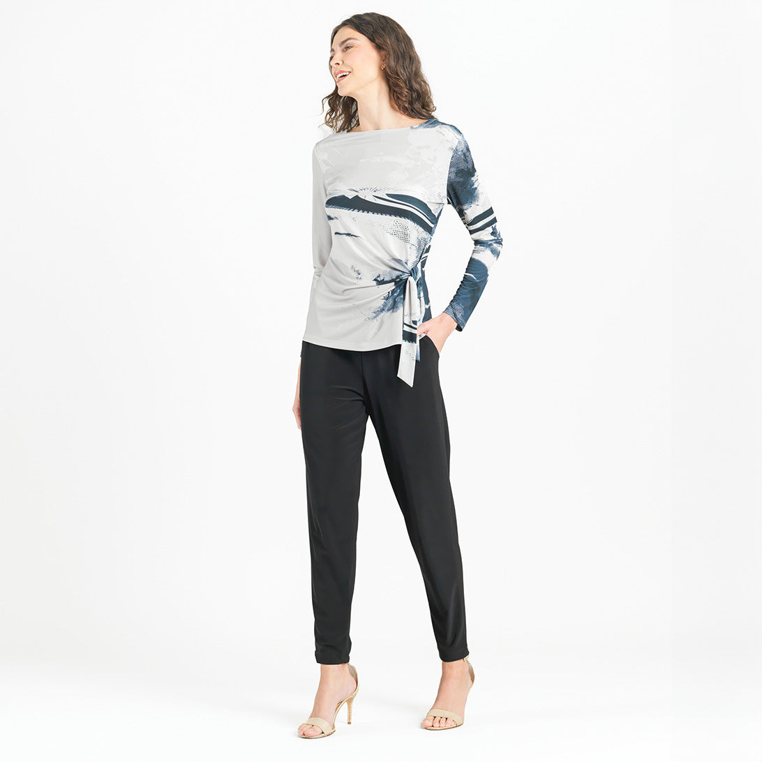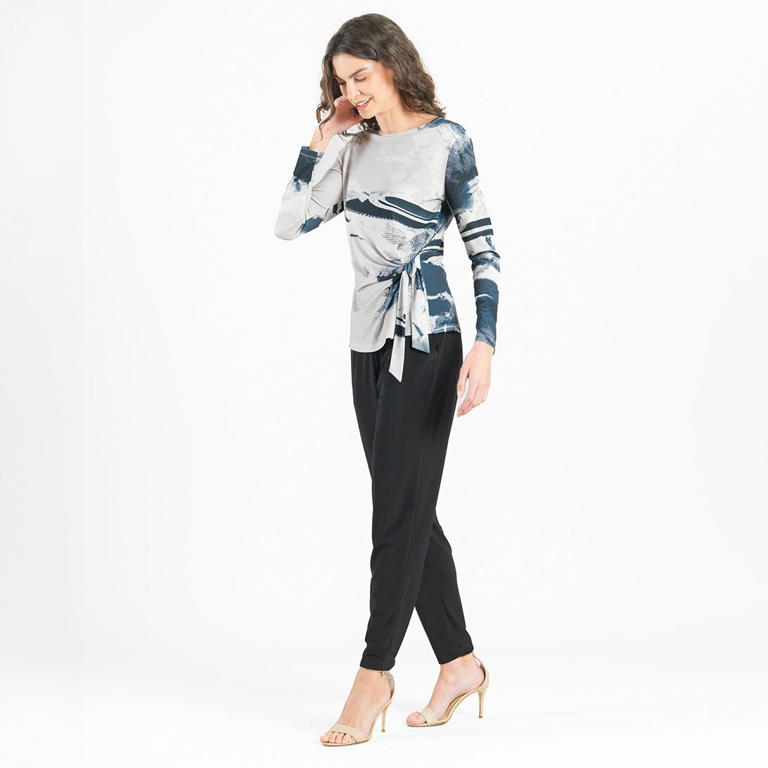 Every cloud has a silver lining, and you can rest assured to find it in our Misty Petals Side Tie Waist Top! This stunning top features a wide round neckline, long sleeves, and a side-tie waist detail with a straight hip hemline. A digitally graphic print that displays soft petals and cloud-like effects in misty shades of dark grey, slate, black, and creamy taupe with olive undertones, that come together to create a print reminiscent of nature’s tranquility. ♥ Each piece is a unique, one-of-a-kind print and print placement will vary. Carefree Travel Fabric – Soft Silky Knit Our signature poly blend fibers offer luxurious softness with lightweight, wrinkle-free comfort. This easy-care fabric is quick drying and cooler than linen or cotton, making it perfect for on-the-go wear.Wrinkle Free Travel Friendly Ultra Lightweight Soft Knit Fabric Breathable Jersey-Like Feel