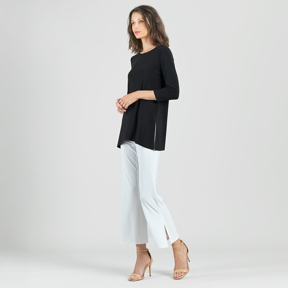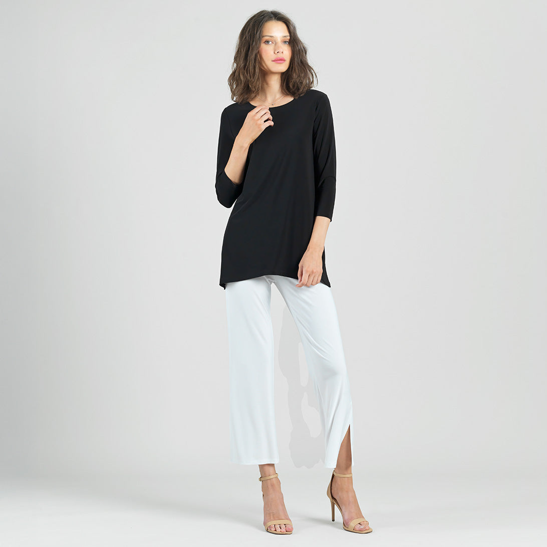 Modernize your basic pieces with our Side Vent Kerchief Hem Tunic! This tunic features a round neckline, 3/4 length sleeves, and a kerchief hemline with dual side vents that create a flattering silhouette. Carefree Travel Fabric – Soft Silky Knit Our signature poly blend fibers offer luxurious softness with lightweight, wrinkle-free comfort. This easy-care fabric is quick drying and cooler than linen or cotton, making it perfect for on-the-go wear.Wrinkle Free Travel Friendly Ultra Lightweight Soft Knit Fabric Breathable Jersey-Like Feel