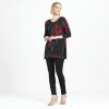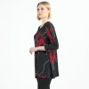 Connect the fashion dots and allow your wardrobe to blossom in our Polka Poppy Side Vent Kerchief Hem Tunic! This tunic features a round neckline, 3/4 length sleeves, and a kerchief hemline with dual side vents that create a flattering silhouette. A striking print that displays a motif of poppy blossoms in shades of crimson and ruby red, encompassed by subtle hints of grey, and cascading white and grey polka dots that infuse a playful and modern twist. ♥ Each piece is a unique, one-of-a-kind print and print placement will vary. Carefree Travel Fabric – Soft Silky Knit Our signature poly blend fibers offer luxurious softness with lightweight, wrinkle-free comfort. This easy-care fabric is quick drying and cooler than linen or cotton, making it perfect for on-the-go wear.Wrinkle Free Travel Friendly Ultra Lightweight Soft Knit Fabric Breathable Jersey-Like Feel