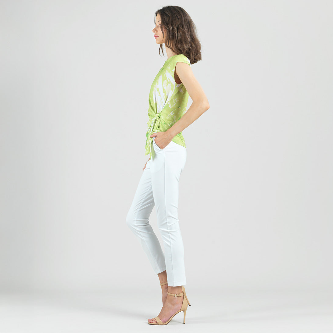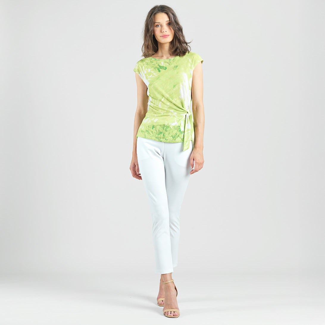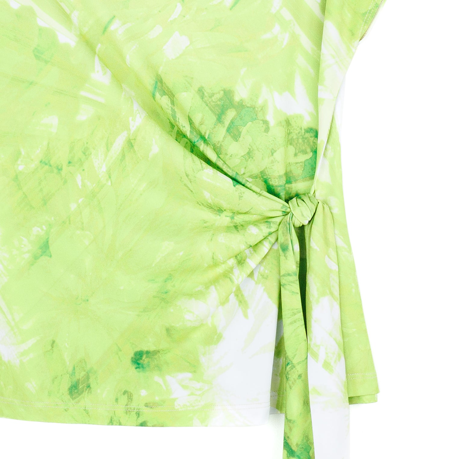 When life gives you lemons or lime… wear our Floral Citrus Slant Sleeve Side Tie Top! This style features a scoop neckline, short slanted sleeves, a side tie detail that allows you to create a silhouette to your liking, and a straight hemline. A vibrant, energetic print featuring an artistic blend of sweeping brushstrokes that create an abstract watercolor floral design in shades of lime and true greens, with subtle hints of white and undertones of yellow. ♥ Each piece is a unique, one-of-a-kind print and print placement will vary. Carefree Travel Fabric – Soft Silky Knit Our signature poly blend fibers offer luxurious softness with lightweight, wrinkle-free comfort. This easy-care fabric is quick drying and cooler than linen or cotton, making it perfect for on-the-go wear.Wrinkle Free Travel Friendly Ultra Lightweight Soft Knit Fabric Breathable Jersey-Like Feel