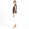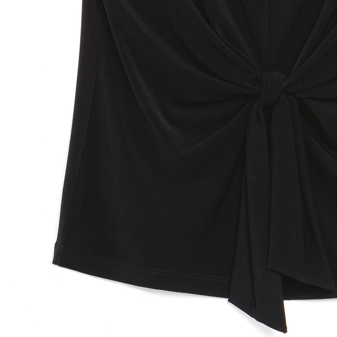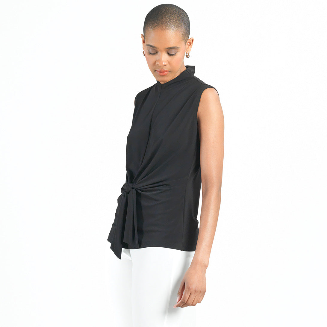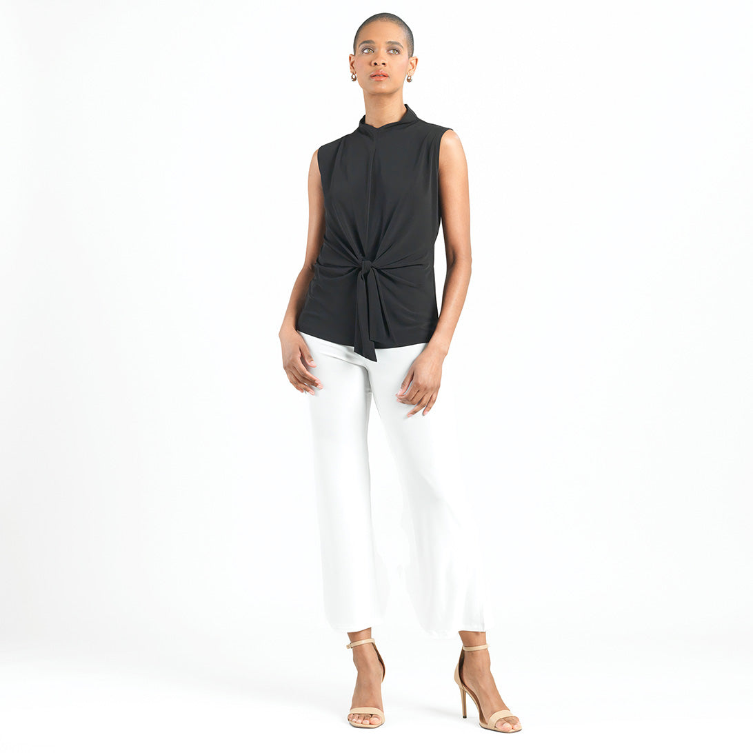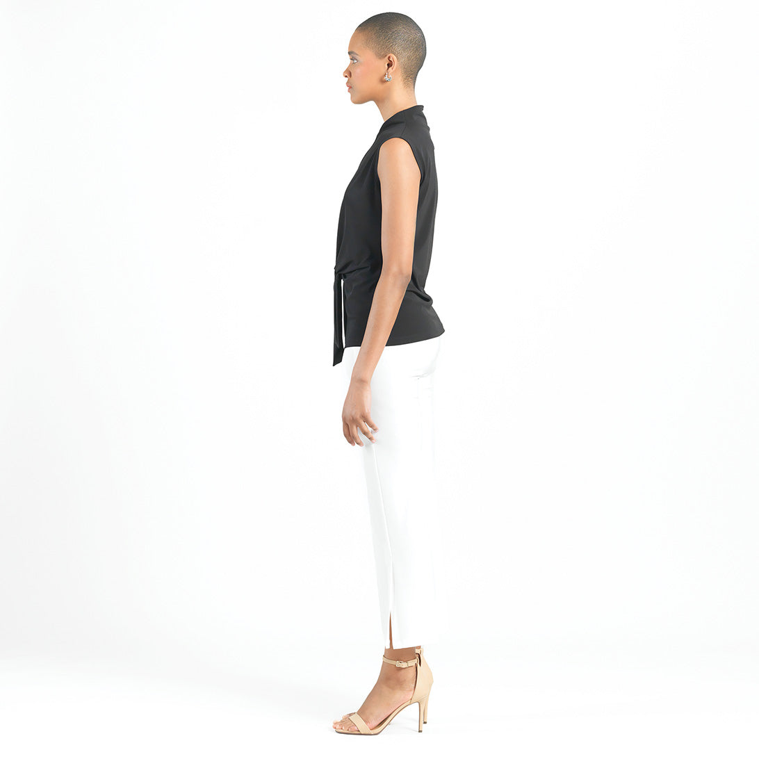 Our Sleeveless Center Front Tie Top is a minimalist’s dream! This flattering sleeveless top features a v-bottle neckline, a vertical neck-to-hem center seam, and a front-center waist tie that creates a beautiful draped effect that accentuates your natural figure. Carefree Travel Fabric – Soft Silky Knit Our signature poly blend fibers offer luxurious softness with lightweight, wrinkle-free comfort. This easy-care fabric is quick drying and cooler than linen or cotton, making it perfect for on-the-go wear.Wrinkle Free Travel Friendly Ultra Lightweight Soft Knit Fabric Breathable Jersey-Like Feel