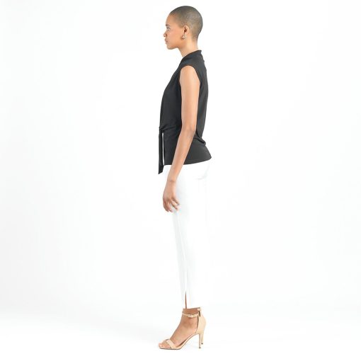 Our Sleeveless Center Front Tie Top is a minimalist’s dream! This flattering sleeveless top features a v-bottle neckline, a vertical neck-to-hem center seam, and a front-center waist tie that creates a beautiful draped effect that accentuates your natural figure. Carefree Travel Fabric – Soft Silky Knit Our signature poly blend fibers offer luxurious softness with lightweight, wrinkle-free comfort. This easy-care fabric is quick drying and cooler than linen or cotton, making it perfect for on-the-go wear.Wrinkle Free Travel Friendly Ultra Lightweight Soft Knit Fabric Breathable Jersey-Like Feel