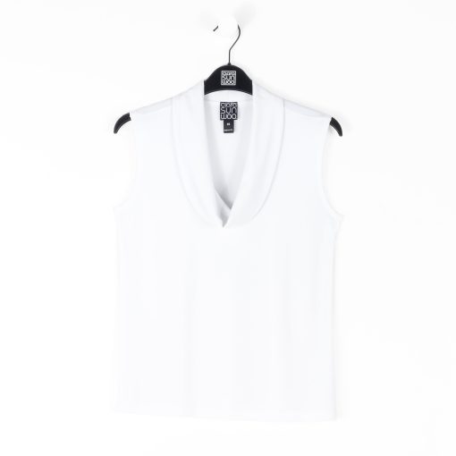 Our Sleeveless Draped Cowl Neck Top combines minimalist fashion with a modern twist! This sleeveless, bra-friendly top features a draped cowl neckline, bust dart details, and a straight hemline with 3″ side vents.Carefree Travel Fabric – Soft Silky Knit Our signature poly blend fibers offer luxurious softness with lightweight, wrinkle-free comfort. This easy-care fabric is quick drying and cooler than linen or cotton, making it perfect for on-the-go wear.Wrinkle Free Travel Friendly Ultra Lightweight Soft Knit Fabric Breathable Jersey-Like Feel