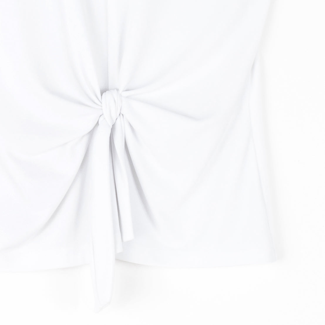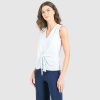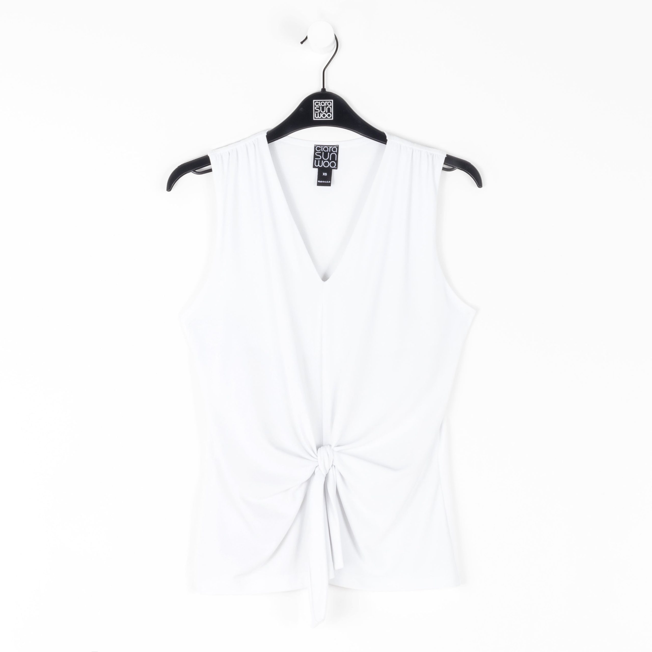 Our Sleeveless V-Neck Center Front Tie Top combines minimalist fashion with a modern twist! This flattering sleeveless top features a classic v-neckline, pleated shoulder seam, a vertical neck-to-hem center seam, and a front-center waist tie that creates a beautiful draped effect that accentuates your natural figure. Carefree Travel Fabric – Soft Silky Knit Our signature poly blend fibers offer luxurious softness with lightweight, wrinkle-free comfort. This easy-care fabric is quick drying and cooler than linen or cotton, making it perfect for on-the-go wear.Wrinkle Free Travel Friendly Ultra Lightweight Soft Knit Fabric Breathable Jersey-Like Feel