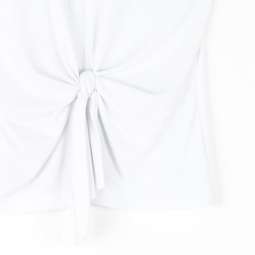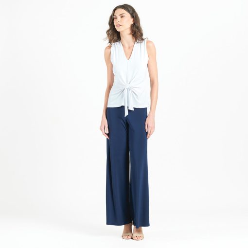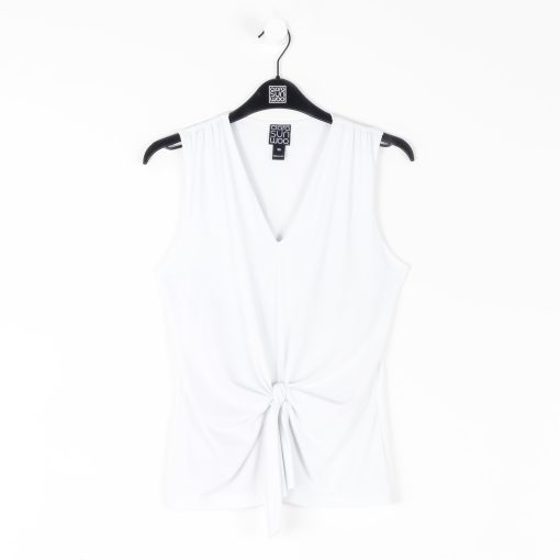 Our Sleeveless V-Neck Center Front Tie Top combines minimalist fashion with a modern twist! This flattering sleeveless top features a classic v-neckline, pleated shoulder seam, a vertical neck-to-hem center seam, and a front-center waist tie that creates a beautiful draped effect that accentuates your natural figure. Carefree Travel Fabric – Soft Silky Knit Our signature poly blend fibers offer luxurious softness with lightweight, wrinkle-free comfort. This easy-care fabric is quick drying and cooler than linen or cotton, making it perfect for on-the-go wear.Wrinkle Free Travel Friendly Ultra Lightweight Soft Knit Fabric Breathable Jersey-Like Feel