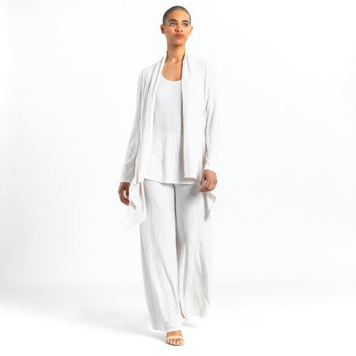 If you’re looking for an item that’s as elegant as it is effortless, then you need our Soft Pleat Knit Palazzo Pant! Featuring a 3.5” pull-on waistband, higher rise, and ultra-flattering wide-leg silhouette that naturally flows against the body. A gratifying way to feel elegant in a timeless piece! Our pleated Ivory shade is a true ivory color with a light, creamy-beige undertone, and a radiant-matte finish. A new, luxurious ethereal fabric, inspired by elegant plissé fibers. Designed with a distinct, crinkled-like feel, that is rich in texture while retaining its lightweight shape. It is thin and delicate, allowing it to drape beautifully, and has a radiant-matte finish.Carefree Travel Fabric – Soft Pleated Plissé Knit Our signature rayon-poly blend fabric provides a finish that is rich in texture while being soft, lightweight, and breathable with quick-drying properties. This delicate fabric offers refined durability with crinkled dimension for visual interest. Perfect for warm or transitional weather, you can pack it up and go with ease!3.5″ Soft Waistband Wrinkle Free Travel Friendly Ultra Lightweight Soft Pleated Fabric Crinkled Plissé Texture• Some customers may find this ivory tone to be slightly sheer.