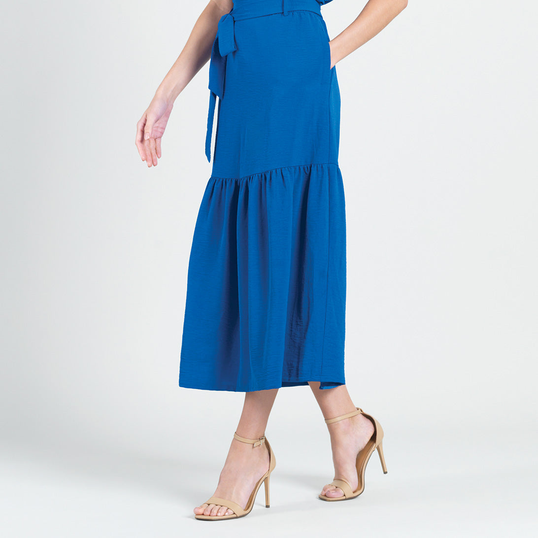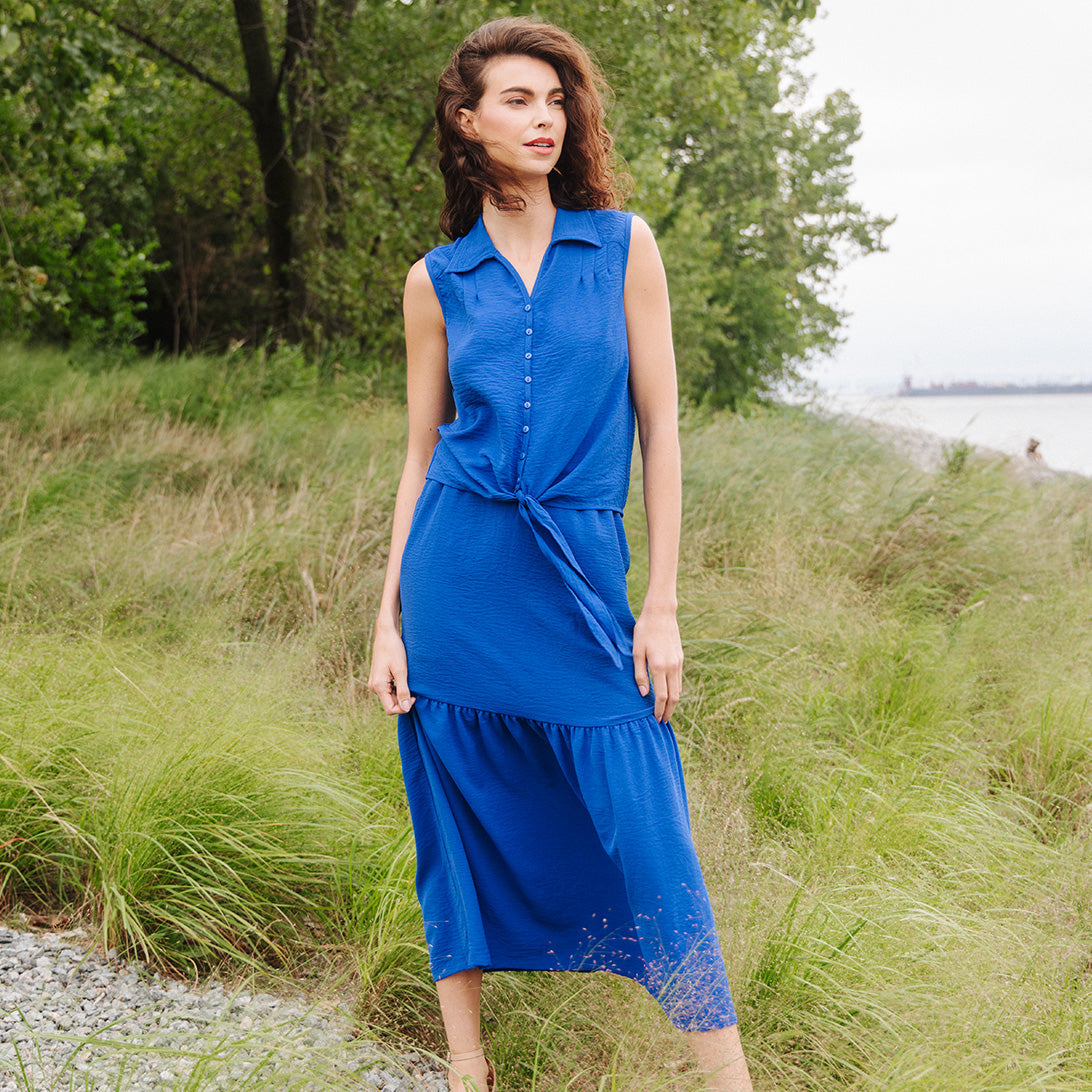 The best things in life are effortless, and our Textured Rayon Tie Waist Tiered Maxi Skirt is no exception! This style features a detachable belt tie, a 1.75″ pull-on elastic waistband with a gathered-back finish, standard side pockets, a single gathered tier, and an a-line shape with a flowing maxi hemline. ** Please refer to Size & Fit tab below – for sizing recommendations! Our rayon Cobalt shade is a true royal blue color with deep vivid undertones. A new, exclusive-quality matte fabric, inspired by upscale vacation wear. Designed with a soft fluid drape, vintage-like texture, and a light-medium weight finish. It is translucent and durable, allowing it to beautifully retain a luxurious look and eye-catching shape. Carefree Travel Fabric – Soft Textured Rayon Knit Our poly-rayon blend is a substantial light-medium weight fabric, with a soft flowing structure and a crinkle-like texture. This long-lasting fabric is sturdy yet breathable and is easy to maintain. It is thinner than linen, cool to the touch, offers comfortable wear, and is a versatile material so it works for many different occasions!Detachable Belt-Tie 1.75″ Elastic Waistband Two Side Pockets Vintage-Like Texture Travel Friendly Light-Medium Weight Fabric Breathable and Sturdy Finish