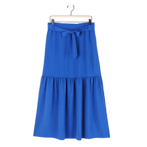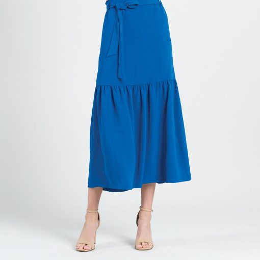 The best things in life are effortless, and our Textured Rayon Tie Waist Tiered Maxi Skirt is no exception! This style features a detachable belt tie, a 1.75″ pull-on elastic waistband with a gathered-back finish, standard side pockets, a single gathered tier, and an a-line shape with a flowing maxi hemline. ** Please refer to Size & Fit tab below – for sizing recommendations! Our rayon Cobalt shade is a true royal blue color with deep vivid undertones. A new, exclusive-quality matte fabric, inspired by upscale vacation wear. Designed with a soft fluid drape, vintage-like texture, and a light-medium weight finish. It is translucent and durable, allowing it to beautifully retain a luxurious look and eye-catching shape. Carefree Travel Fabric – Soft Textured Rayon Knit Our poly-rayon blend is a substantial light-medium weight fabric, with a soft flowing structure and a crinkle-like texture. This long-lasting fabric is sturdy yet breathable and is easy to maintain. It is thinner than linen, cool to the touch, offers comfortable wear, and is a versatile material so it works for many different occasions!Detachable Belt-Tie 1.75″ Elastic Waistband Two Side Pockets Vintage-Like Texture Travel Friendly Light-Medium Weight Fabric Breathable and Sturdy Finish