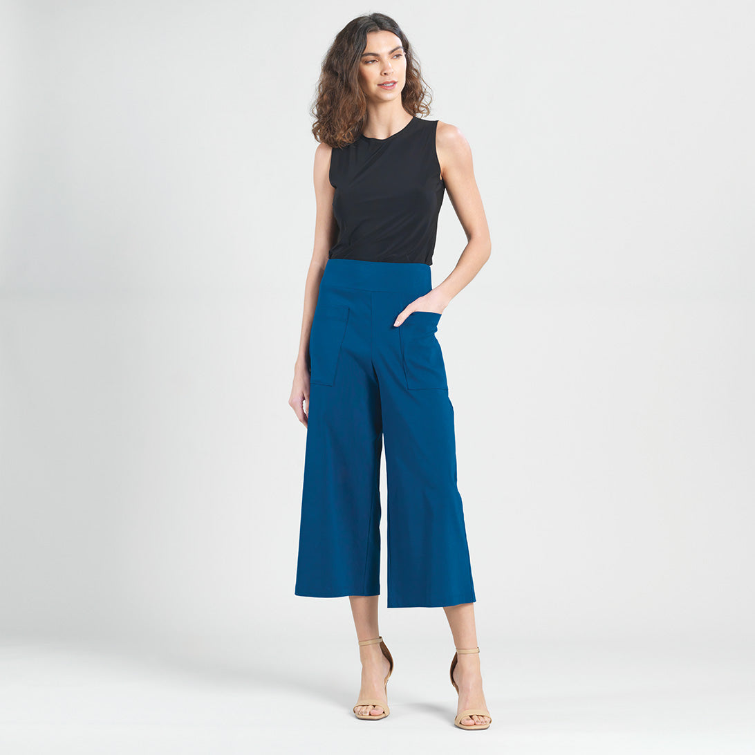 Our Techno Knit Front Pocket Gaucho Pant is sure to become a much-needed staple to your wardrobe! This style features a 3″ pull-on waistband, two modern front pockets, and a wide-leg, cropped hem that is designed to naturally flow against the body. Our French Blue shade is a vibrant, warm, smokey, mid-tone blue color with cerulean undertones.Techno Stretch Fabric – French Blue Knit Our 4-way techno stretch woven fabric offers the perfect balance of lightweight and stretchy comfort with a thicker structured knit for increased durability. A twill-like feel with a cotton or linen look makes it suitable for both professional and casual everyday wear.Pull-on 3″ Waistband Sturdy and Structured in Knit Provides Comfortable Slimming Stretch Fit Resembles Cotton or Twill-Like Fabric Feel