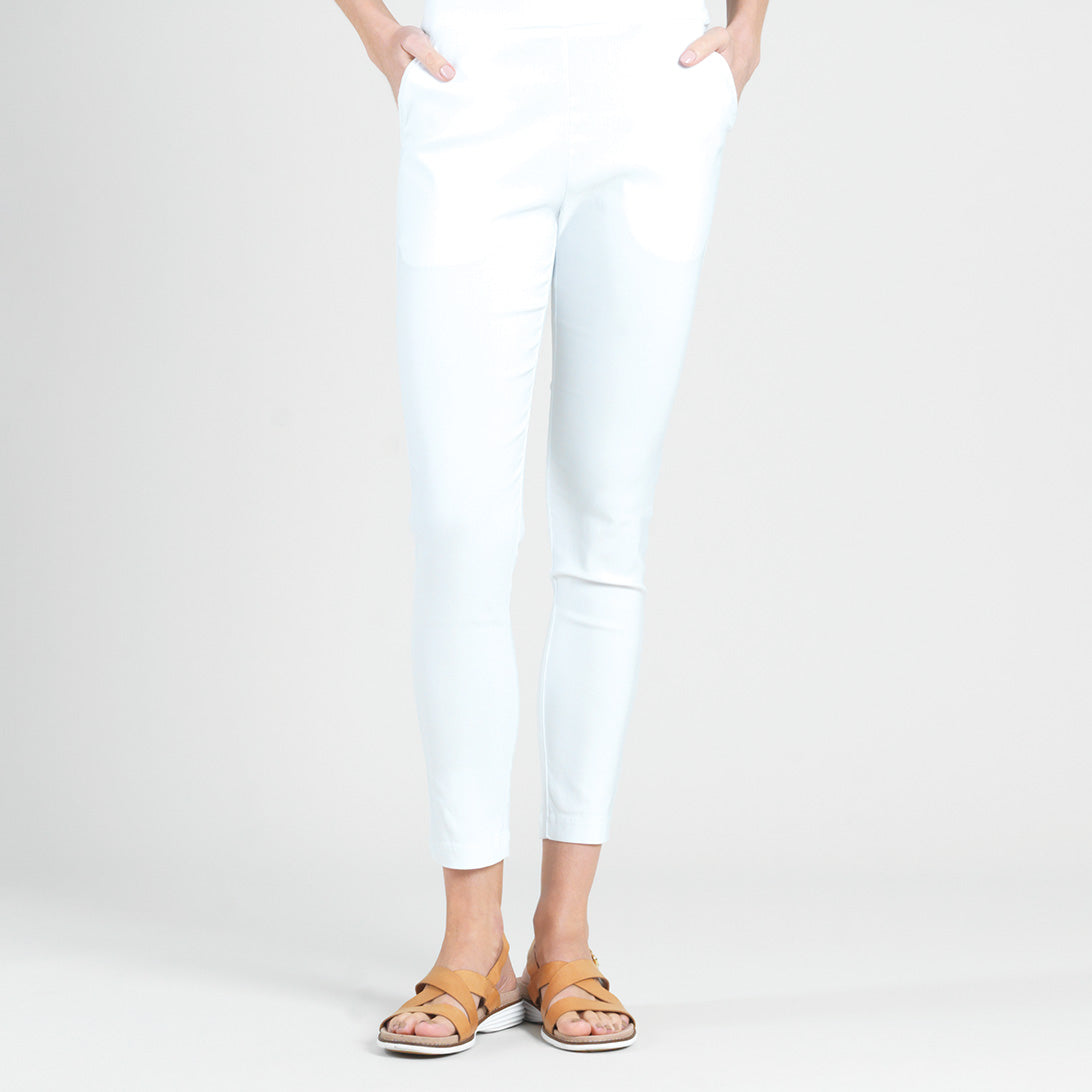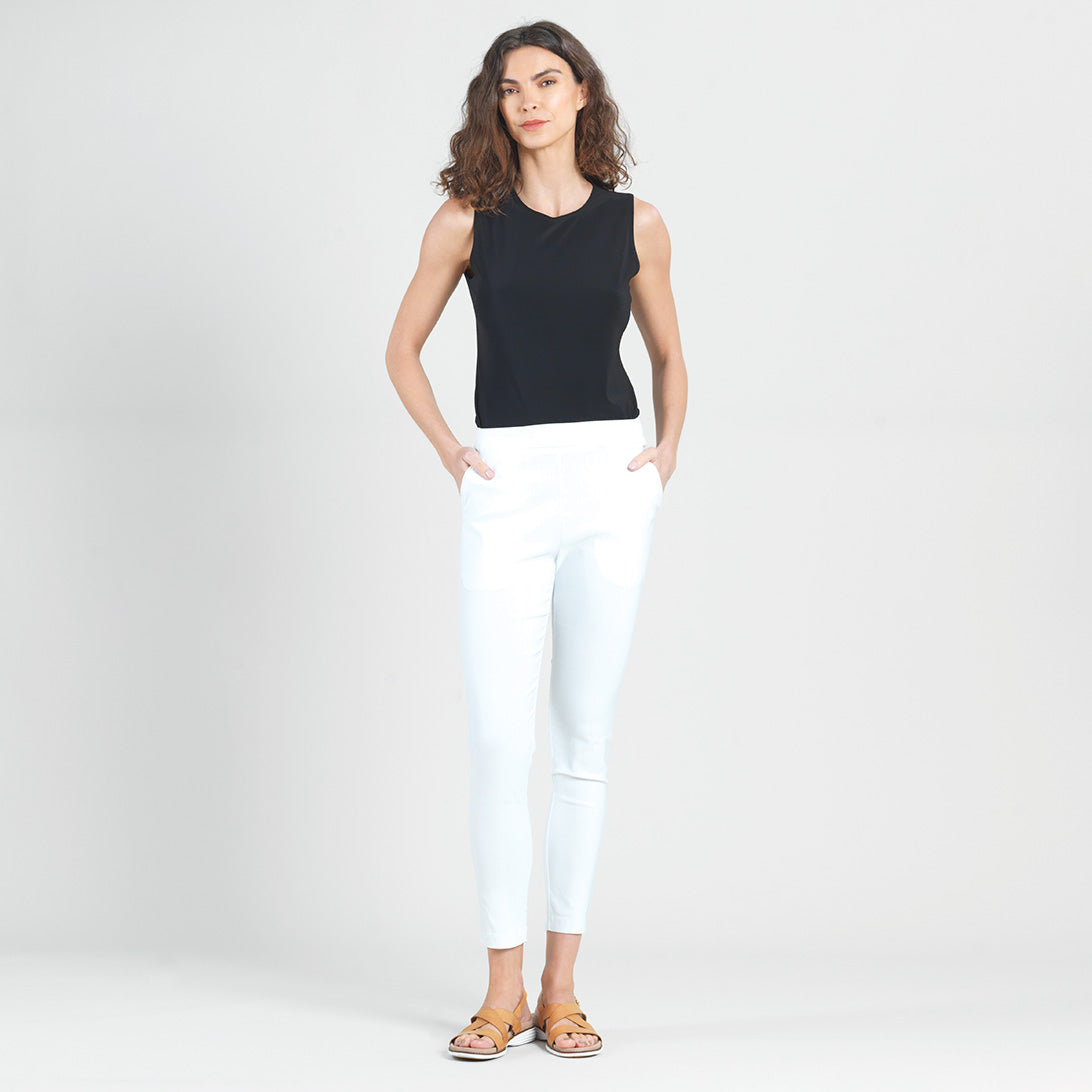 Our Techno Stretch Skinny Ankle Pocket Pant is sure to check all boxes! This pant features a 1” pull-on elastic waistband, pockets, and a slender shape that offers a more substantial and structured fabric feel, with a fitted and tapered ankle-length hem. Techno Stretch Fabric Our 4-way techno stretch woven fabric offers the perfect balance of lightweight and stretchy comfort with a thicker structured knit for increased durability and form-fitting wear. A twill-like feel with a cotton or linen look makes it suitable for both professional and casual everyday wear.Pull-on 1″ Elastic Waist Band Sturdy and Structured in Knit Provides Comfortable Slimming Stretch Fit Resembles Cotton or Twill-Like Fabric Feel