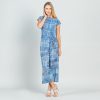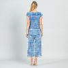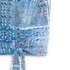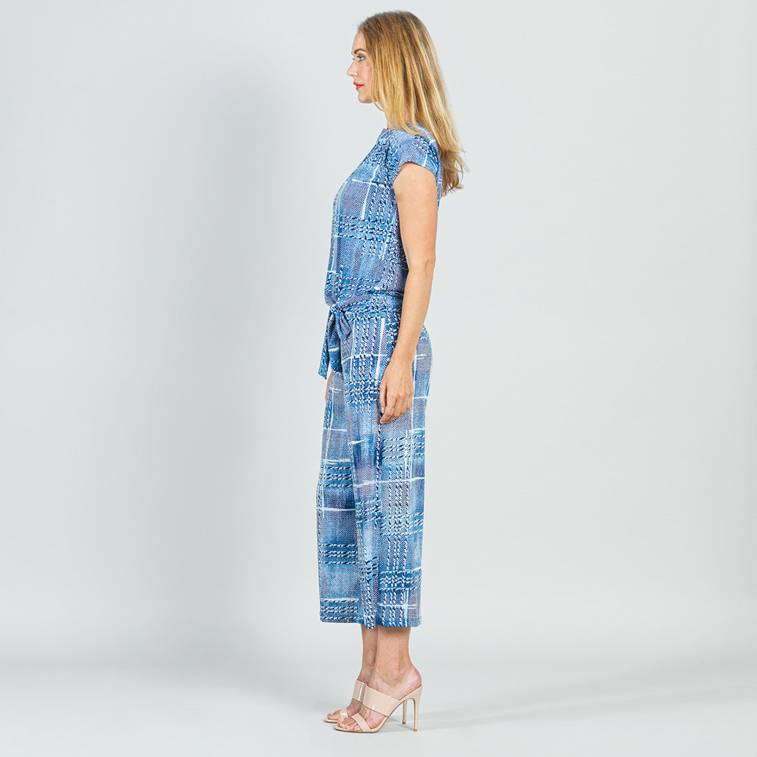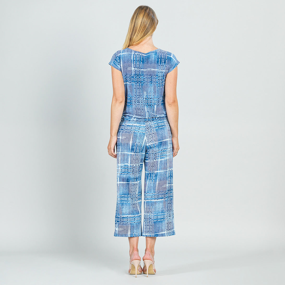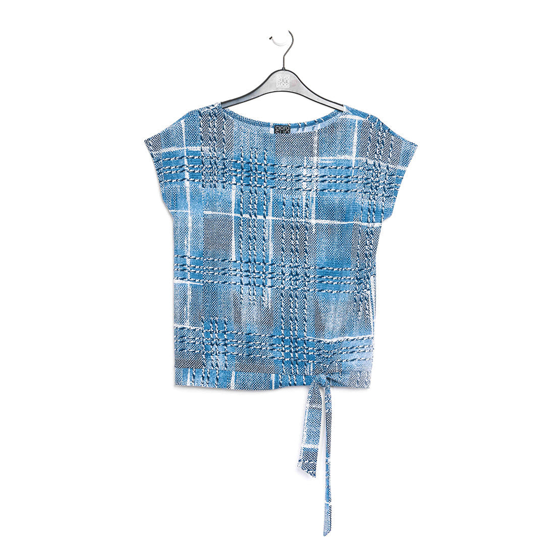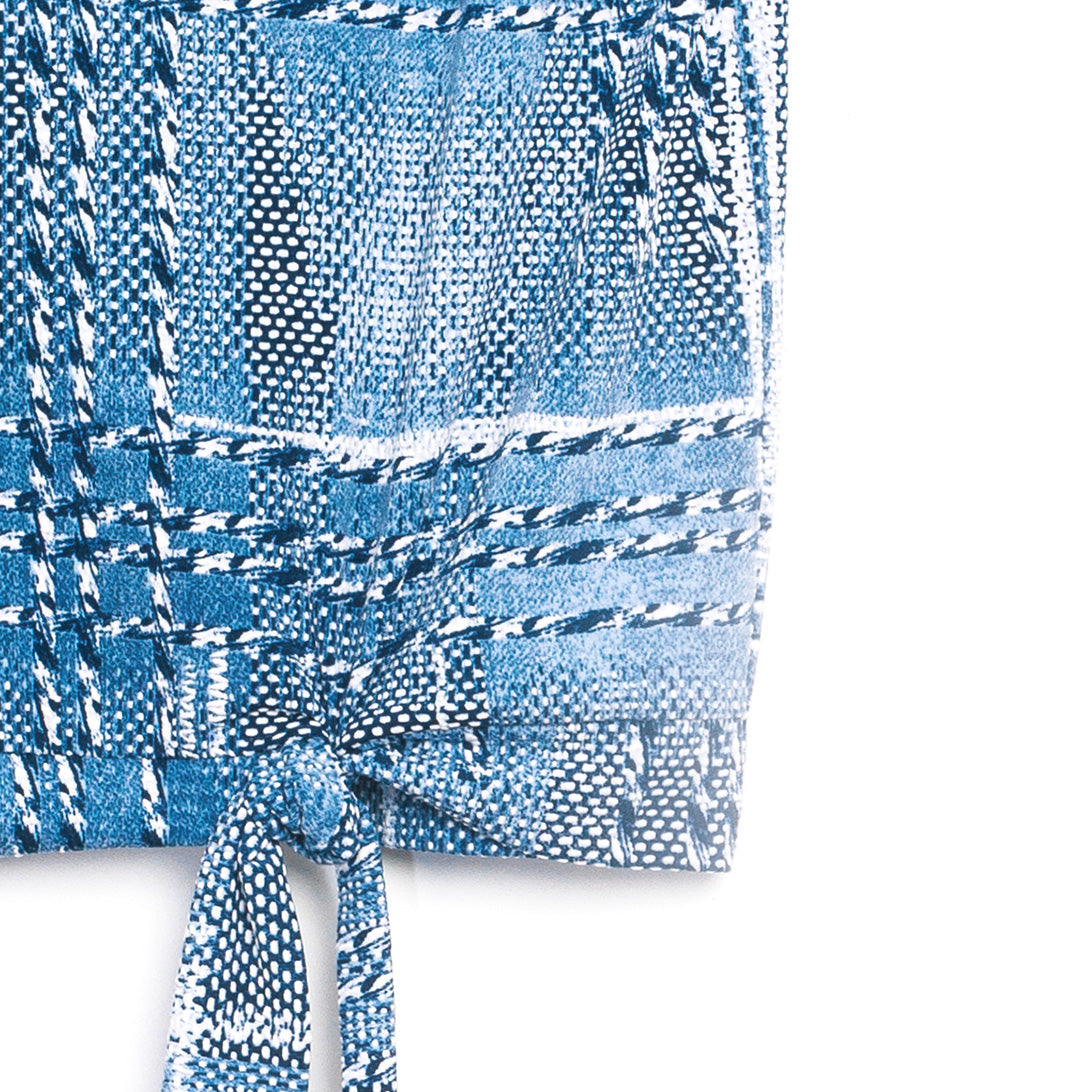 Our Denim Plaid Textured Cap Sleeve Tie Hem Top! This style features a boat neckline, cap sleeves, a boxy silhouette, and a straight-seamed hemline with tie detail. Shades of navy, true blue, and white, compose a large-scale, plaid pattern of crisscrossed lines in various widths, with subtle hints of white threading which create a 3D-like texture. ♥ Each piece is a unique, one-of-a-kind print and print placement will vary. Carefree Travel Fabric – Soft Silky Knit with Embossed Texture Our signature poly blend fibers feature an embossed texture print. It’s breathable, quick-drying, and wrinkle-free – making it ideal for travel. Cooler than linen or cotton and easy to care for, it provides an unbeatable combination of style and comfort. Wrinkle Free Travel FriendlyBreathable Jersey-Like FeelEmbossed Threading Detail