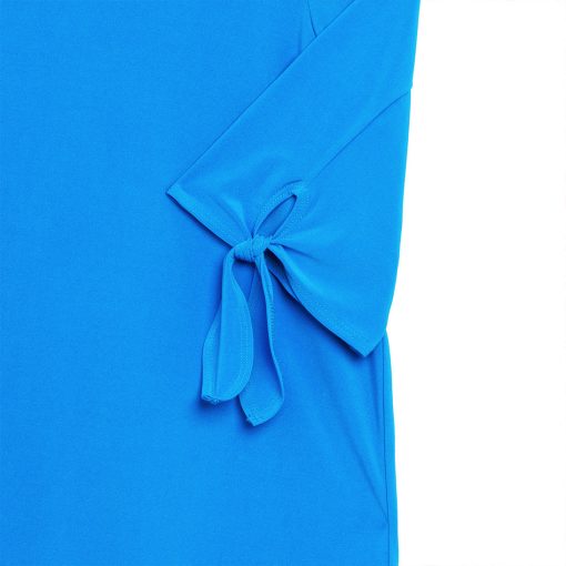 No matter the angle, our Tie Cuff Asymmetrical Vent Tunic is sure to impress! This style features a scoop neckline, elbow-length sleeves with tie-able cuffs, and an asymmetrical hemline with a left-side vent. Our Brilliant Blue shade is a warm, mid-tone color with vibrant, cyan undertones. Carefree Travel Fabric – Soft Silky Knit Our signature poly blend fibers offer luxurious softness with lightweight, wrinkle-free comfort. This easy-care fabric is quick drying and cooler than linen or cotton, making it perfect for on-the-go wear.Wrinkle Free Travel Friendly Ultra Lightweight Soft Knit Fabric Breathable Jersey-Like Feel