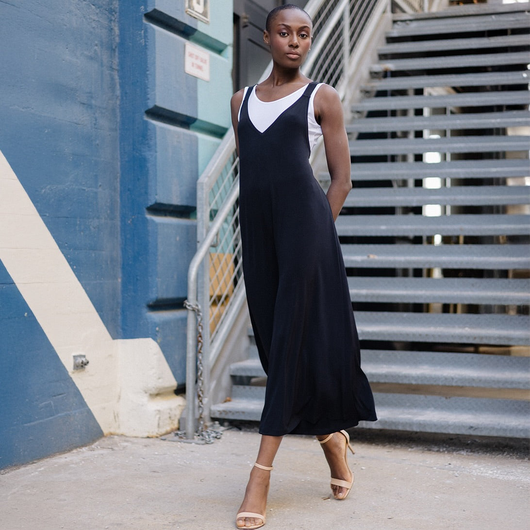 Embrace your feminity and bring your inner confidence to the forefront with our V-Neck Cross Back Jumpsuit! This exciting jumpsuit features a 14″ deep v-neckline, standard front straps that transition into cross back straps which create an alluring peekaboo back slither, and a flowing wide-leg gaucho silhouette—designed as always, with no ties or zippers, making it the perfect step-in-and-go piece. ♥ For those who prefer a less daring look, we recommend pairing this jumpsuit with one of our tanks (sold separately) to achieve a more modest finish.Carefree Travel Fabric – Soft Silky Knit Our signature poly blend fibers offer luxurious softness with lightweight, wrinkle-free comfort. This easy-care fabric is quick drying and cooler than linen or cotton, making it perfect for on-the-go wear.Wear Alone Or With Tank Wrinkle Free Travel Friendly Ultra Lightweight Soft Knit Fabric Breathable Jersey-Like Feel