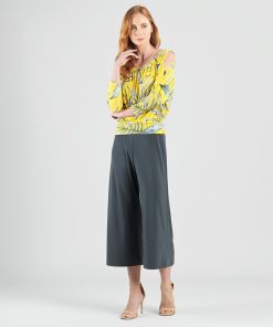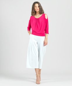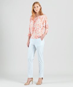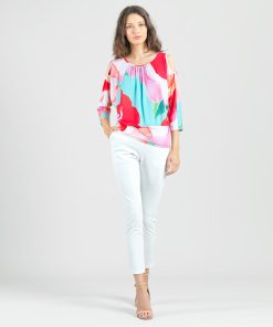 Clara Sunwoo Women’s Open Shoulder Blouson Waist Top – Petal Watercolor | Turquoisepink