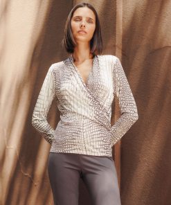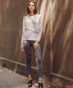 Clara Sunwoo Women’s Shimmer Sequin – Faux Wrap Side Tie Tunic – Silver Pinstripe | Blacksilver
