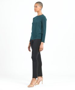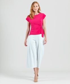 Clara Sunwoo Women’s Silky Pleat Knit – Dolman Short Sleeve Top – Lunar Stripe | Purplewhite