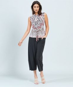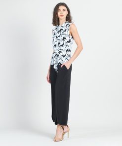 Clara Sunwoo Women’s Sleeveless V-neck Center Front Tie Top – Geo Sketch – Final Sale! | Blackwhite