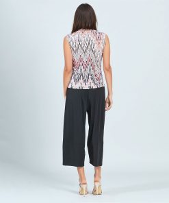 Clara Sunwoo Women’s Sleeveless V-neck Center Front Tie Top – Damask Motif | Coralwhite