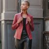 Clara Sunwoo Women’s Sleeveless V-neck Center Front Tie Top – Damask Motif | Coralwhite